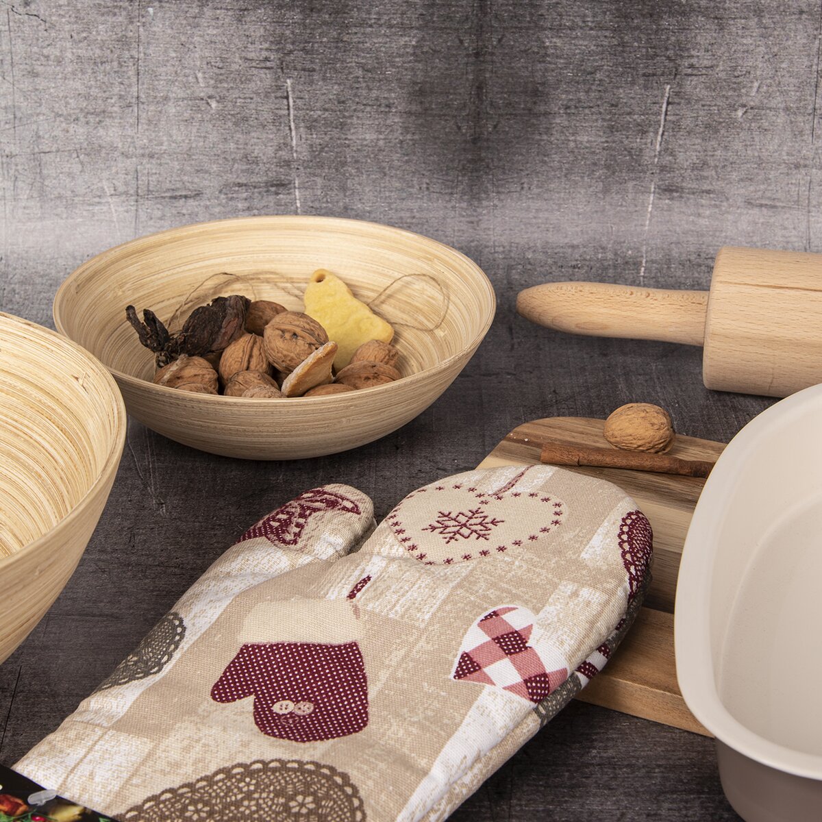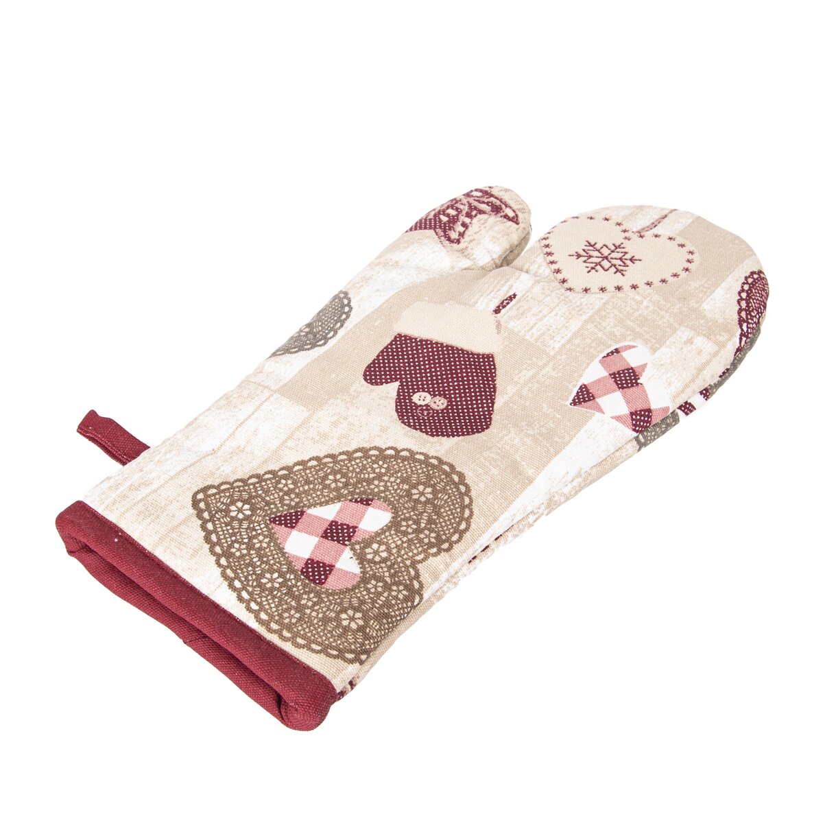 Tato bavlněná rukavice se vzorem srdce v originálním retro stylu vypadá skvěle nejen na chatě a chalupě, ale i v moderní kuchyni. Ladící červené poutko umožňuje její zavěšení.