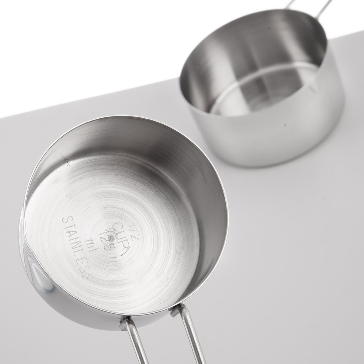 Kód produktu 120561Sada 4 různě velkých nerezových odměrek s dlouhou rukojetí je určena pro přesné dávkování určitého množství surovin pro vaření a pečení - 60 ml, 80 ml, 125 ml a 250 ml.