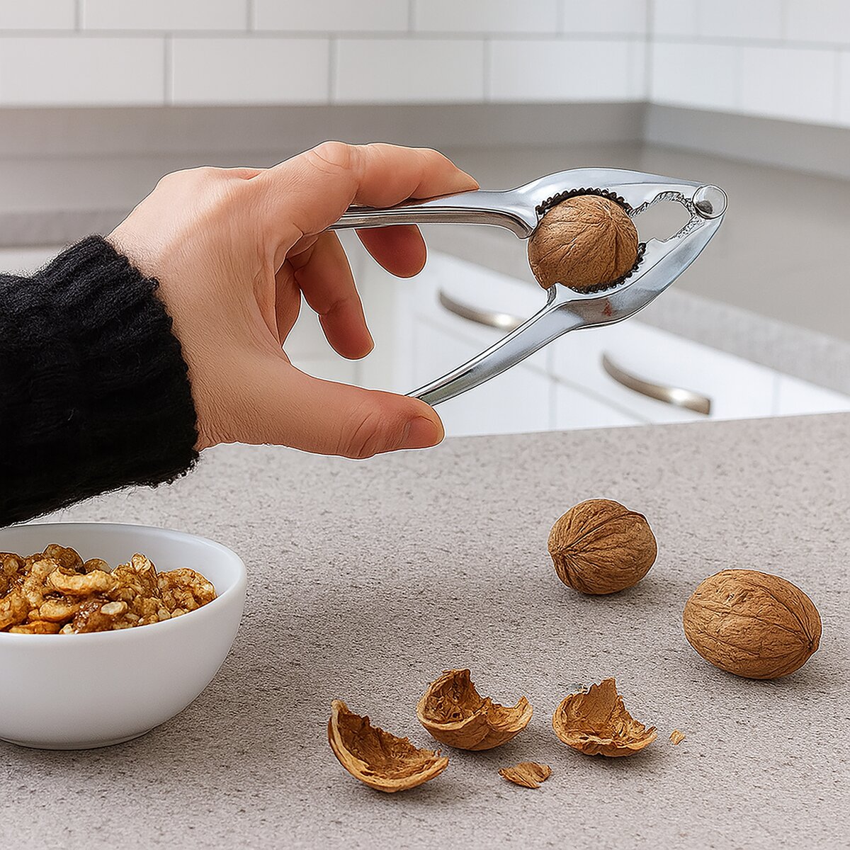 Stylový louskáček na ořechy. Poradí si s různými velikostmi skořápek, ať už se chystáte na pečení ořechového cukroví, nadýchané bábovky, štrúdlu nebo domácí granoly.