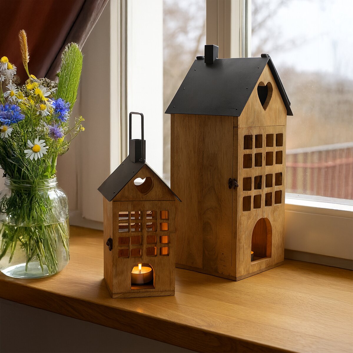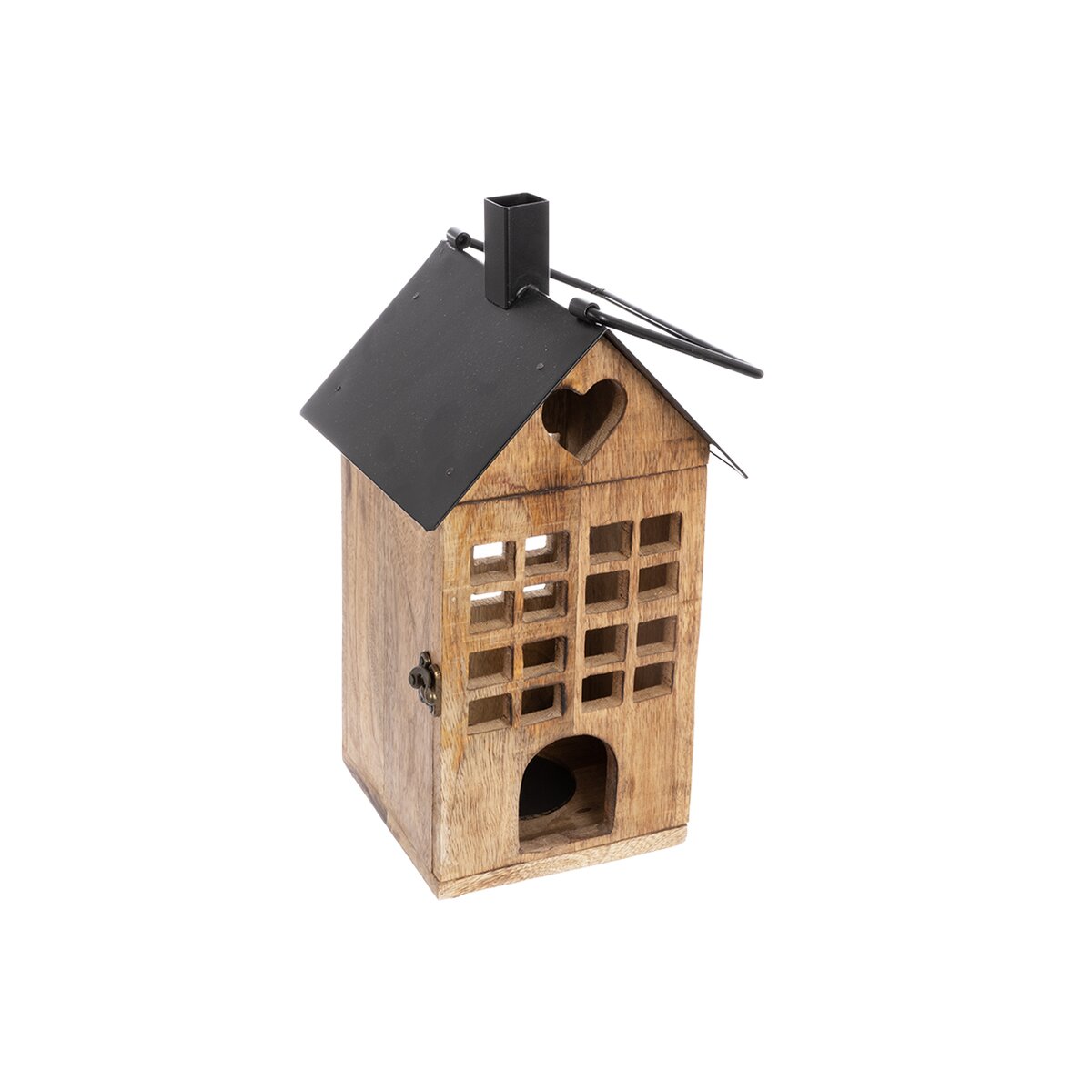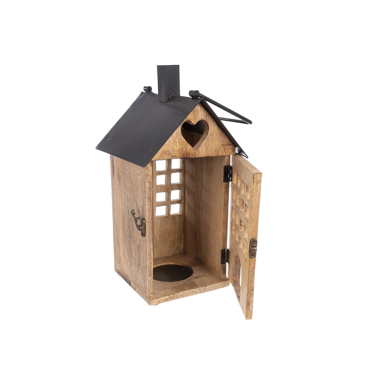 Kód produktu X13074Dřevěná lucerna výšky 36 cm má tvar domečku a je vyrobena z mangového dřeva. Střecha, držadlo a pant umožňující otevírání přední části, je z kovu. Bude stylovou dekorací i zajímavým dárkem.