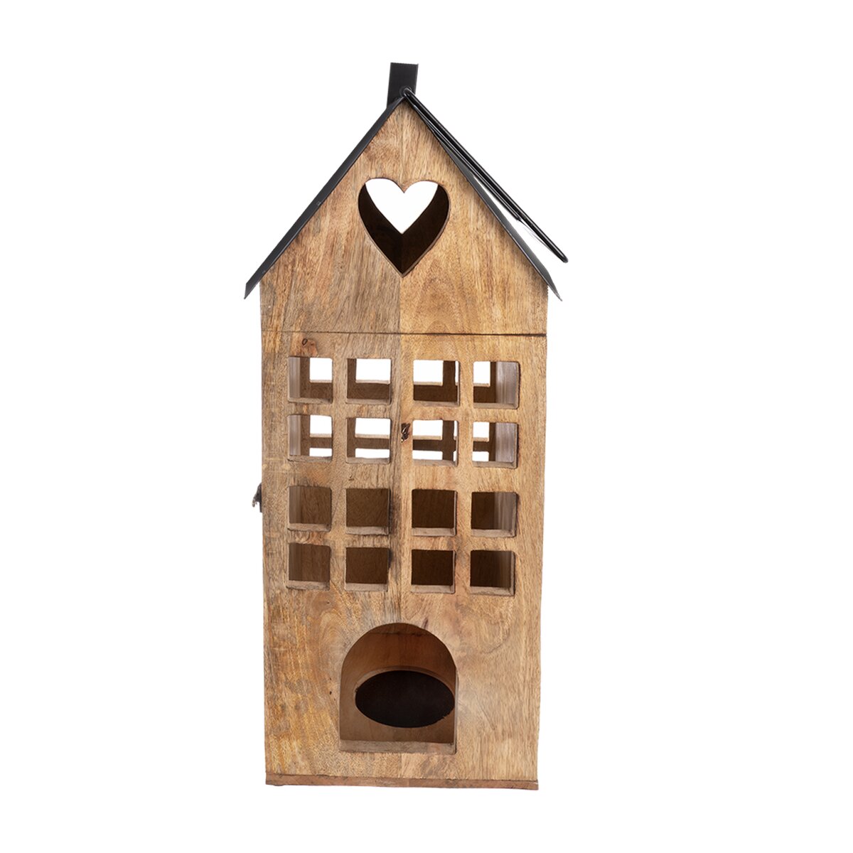 Kód produktu X13075Dřevěná lucerna výšky 66 cm má tvar domečku a je vyrobena z mangového dřeva. Střecha, držadlo a pant umožňující otevírání přední části, je z kovu. Bude stylovou dekorací i zajímavým dárkem.