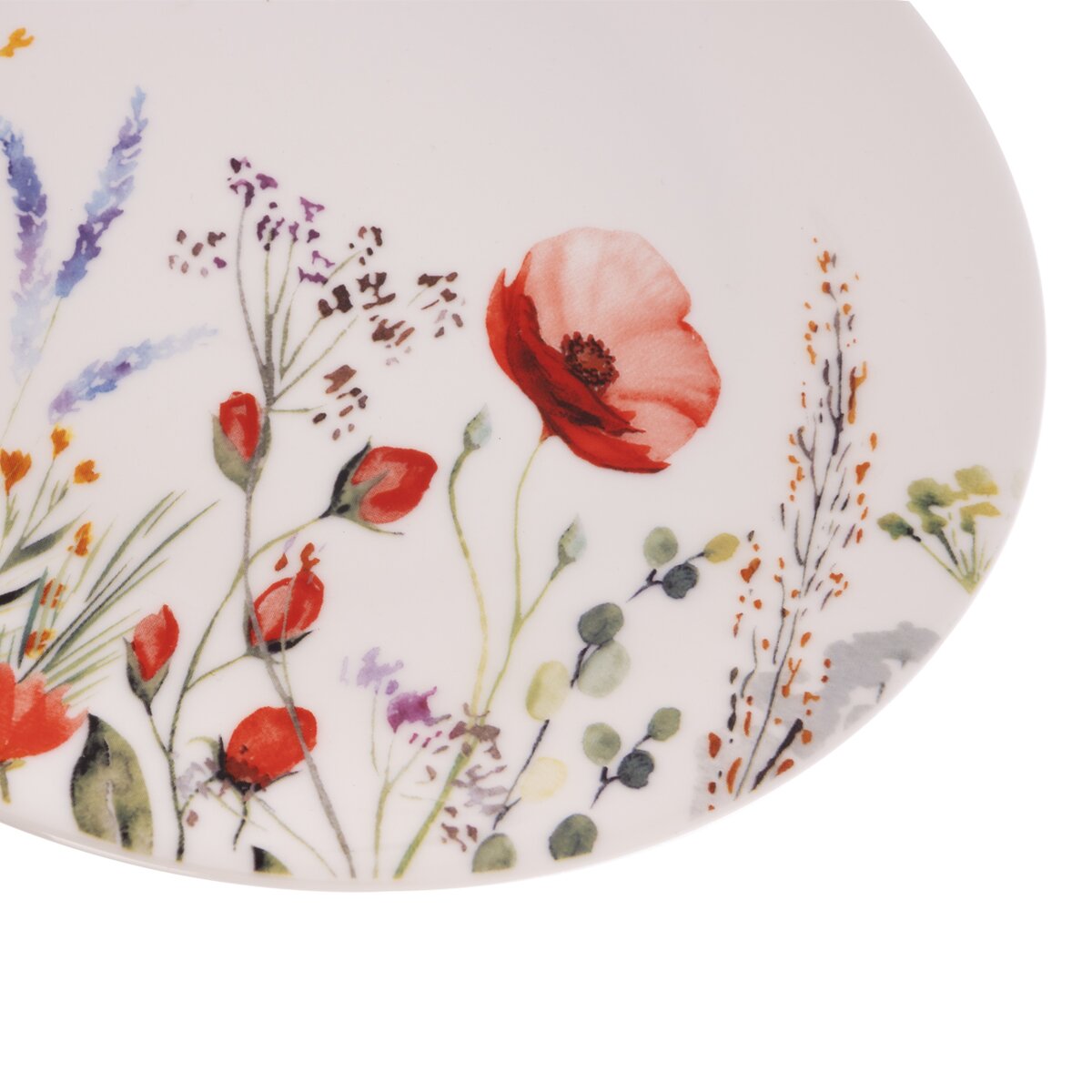 Kód produktu 129180Porcelánový mělký talíř z kolekce MÁK má průměr 24 cm a je zdoben něžným dekorem lučních květin.