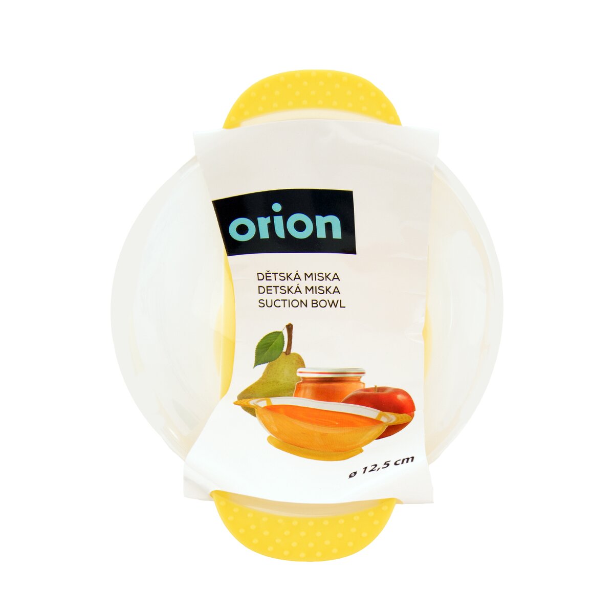 Kód produktu 129802Dětská miska s přísavkou na svačiny a přesnídávky, vyrobená z transparentního plastu se žlutými prvky, bez obsahu BPA. Je opatřena dvěma uchy a praktickou gumovou přísavkou.