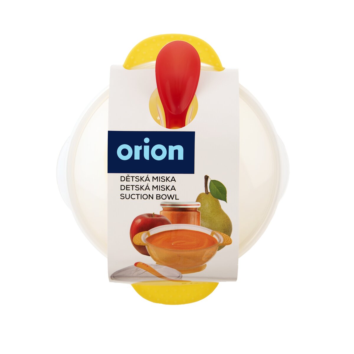 Kód produktu 129804Dětská miska s víčkem, lžičkou a s přísavkou na svačiny a přesnídávky, vyrobená z transparentního plastu se žlutými prvky, bez obsahu BPA. Je doplněna dvěma uchy, víčkem, lžičkou a ve spodní části opatřena gumovou přísavkou.