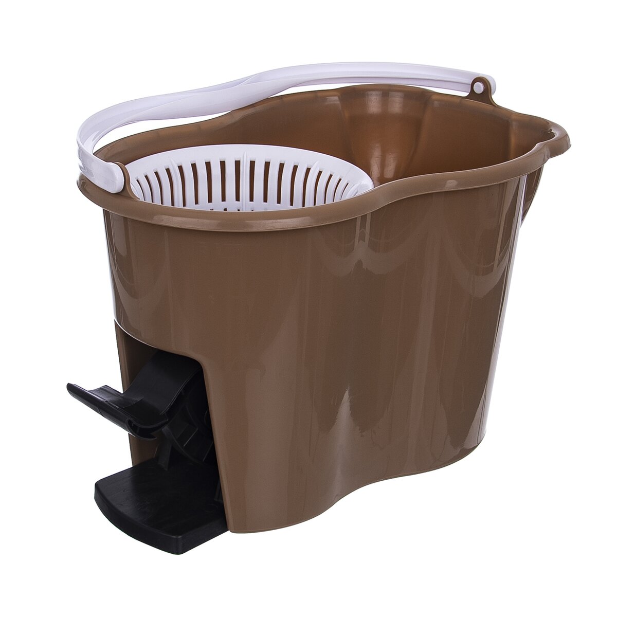 Kód produktu 720723Mop s koncovkou z mikrovlákna, s vědrem a ždímačem s pedálovým mechanismem.