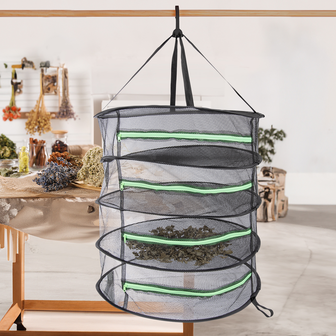 - zavěsíte ji pomocí háčku venku nebo do vnitřního prostoru a v jednotlivých patrech můžete odděleně sušit několik druhů bylinek nebo čehokoli jiného najednou