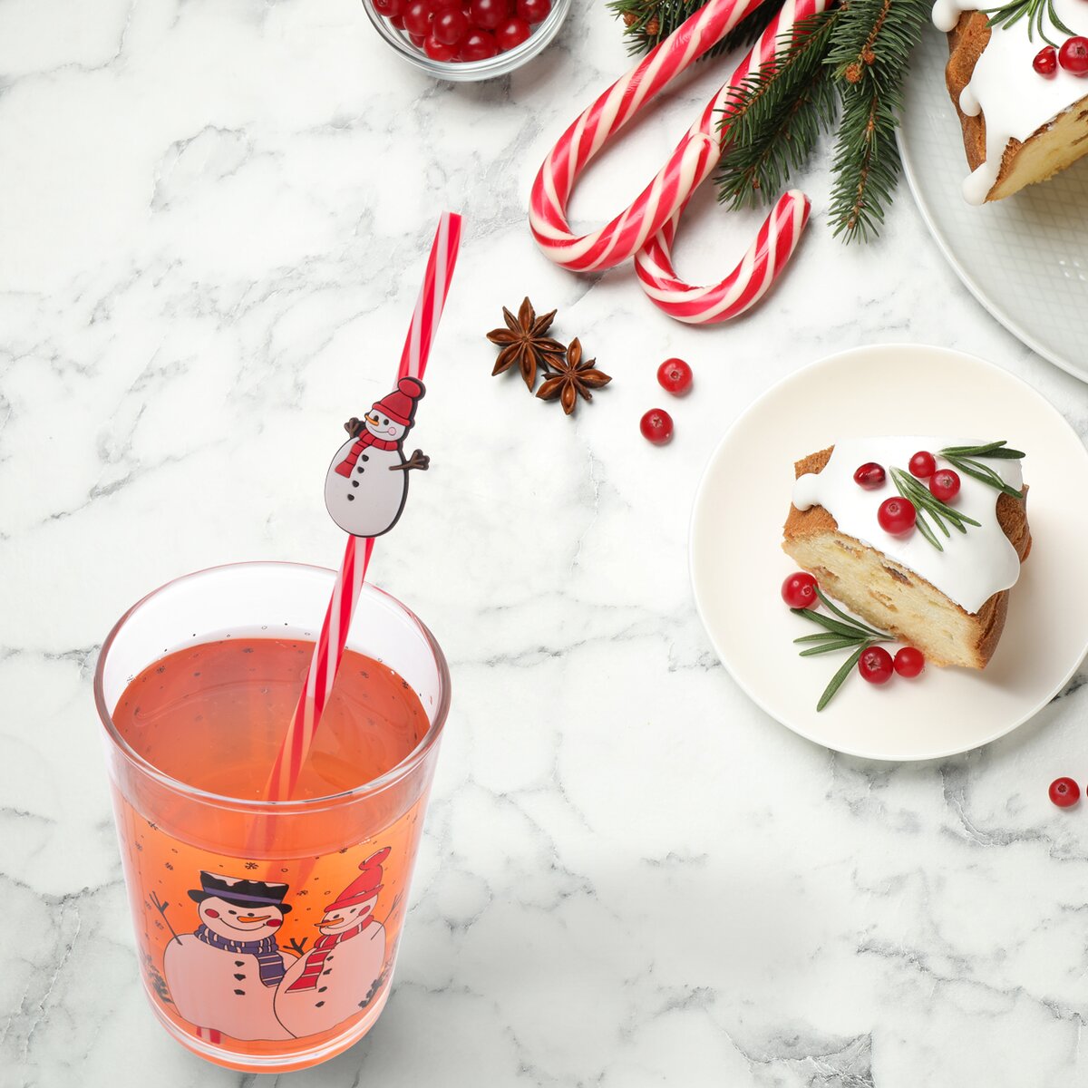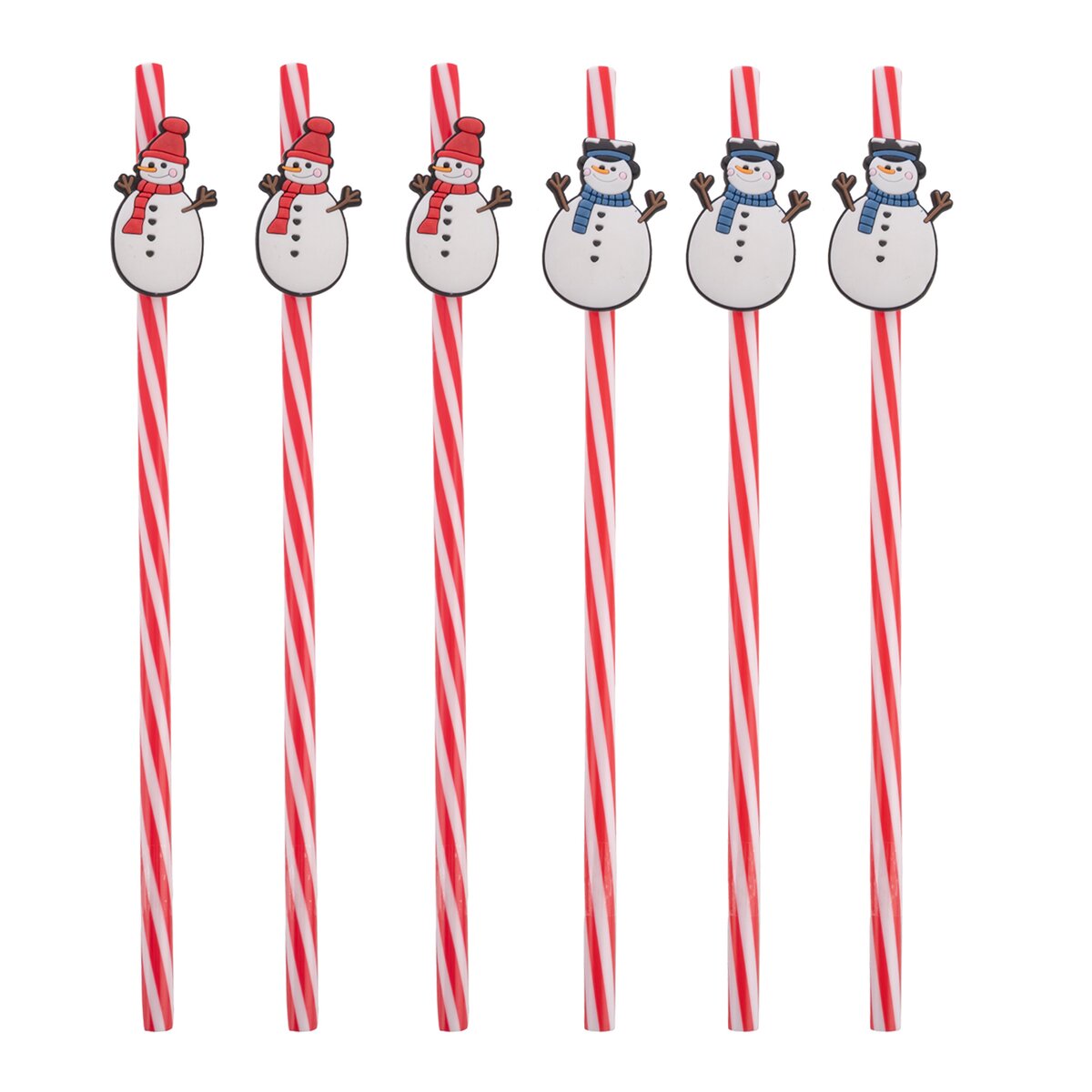Kód produktu 151453Sada 6 kusů červenobílých plastových brček o délce 23 cm, určených pro opakované použití, je doplněna roztomilými sněhuláky.