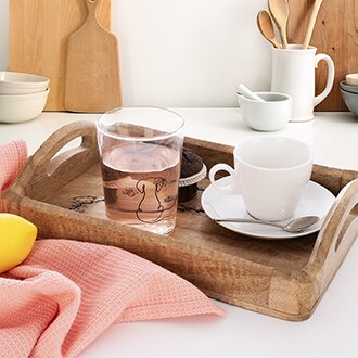 V sortimentu najdete také textil, který motiv kočiček krásně propojuje s kuchyní i jídelnou. Utěrky či podložky dodají prostoru útulný nádech.