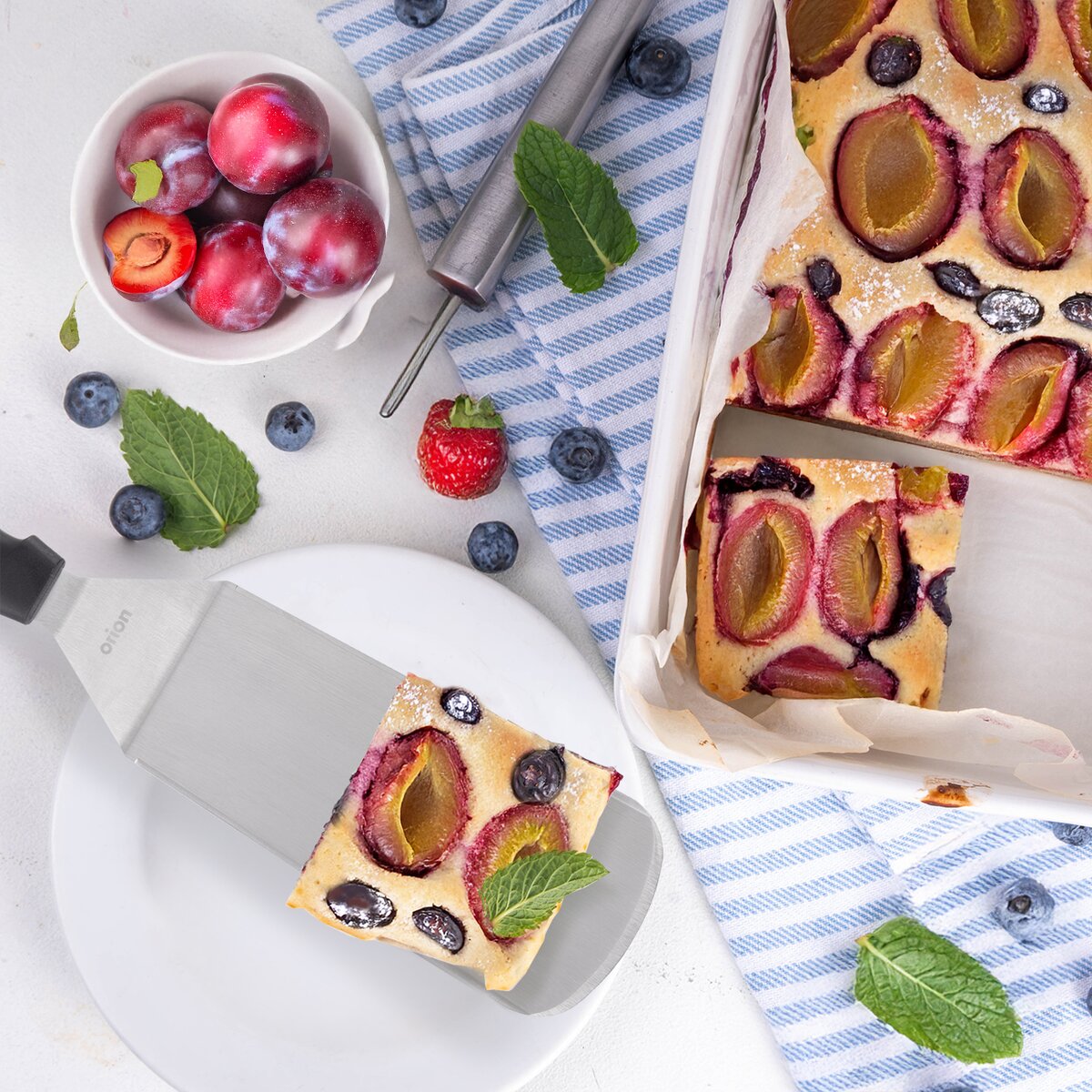Podeberete celý kus, který se udrží v celku a přenesete jej pohodlně na talíř. Je ideální na povrchy, které jsou tvrdé a odolné vůči poškrábání. Nepoužívejte ji na nádobí s nepřilnavým povrchem. Po použití obracečku snadno umyjete v myčce.