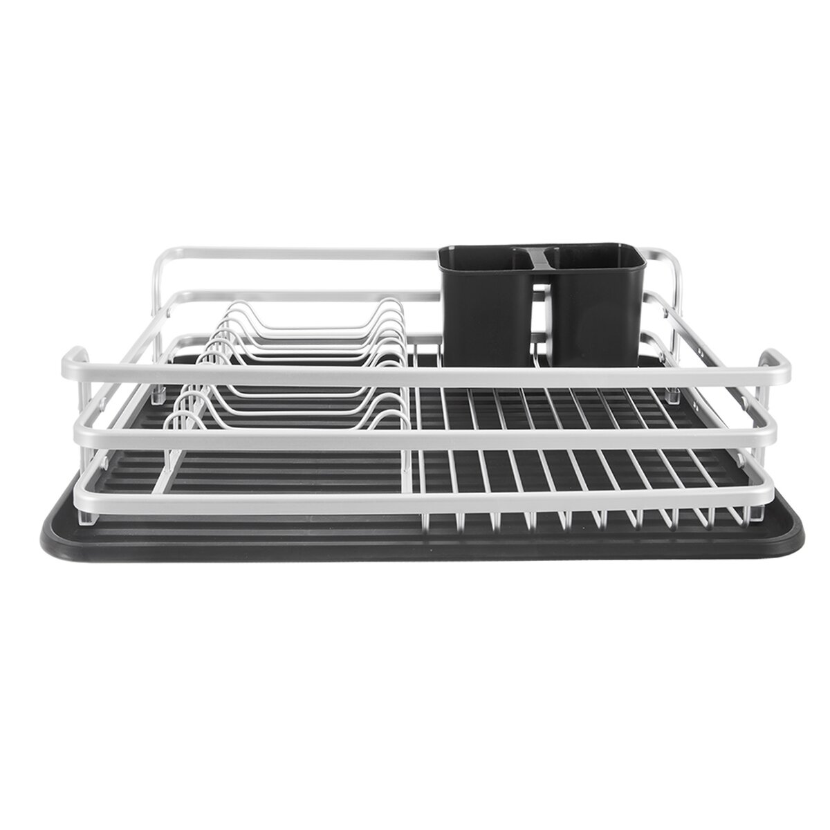 Kód produktu 155221Hliníkový odkapávač na nádobí DELUXE je doplněn odnímatelnou plastovou částí na příbory a tácem v černé barvě.