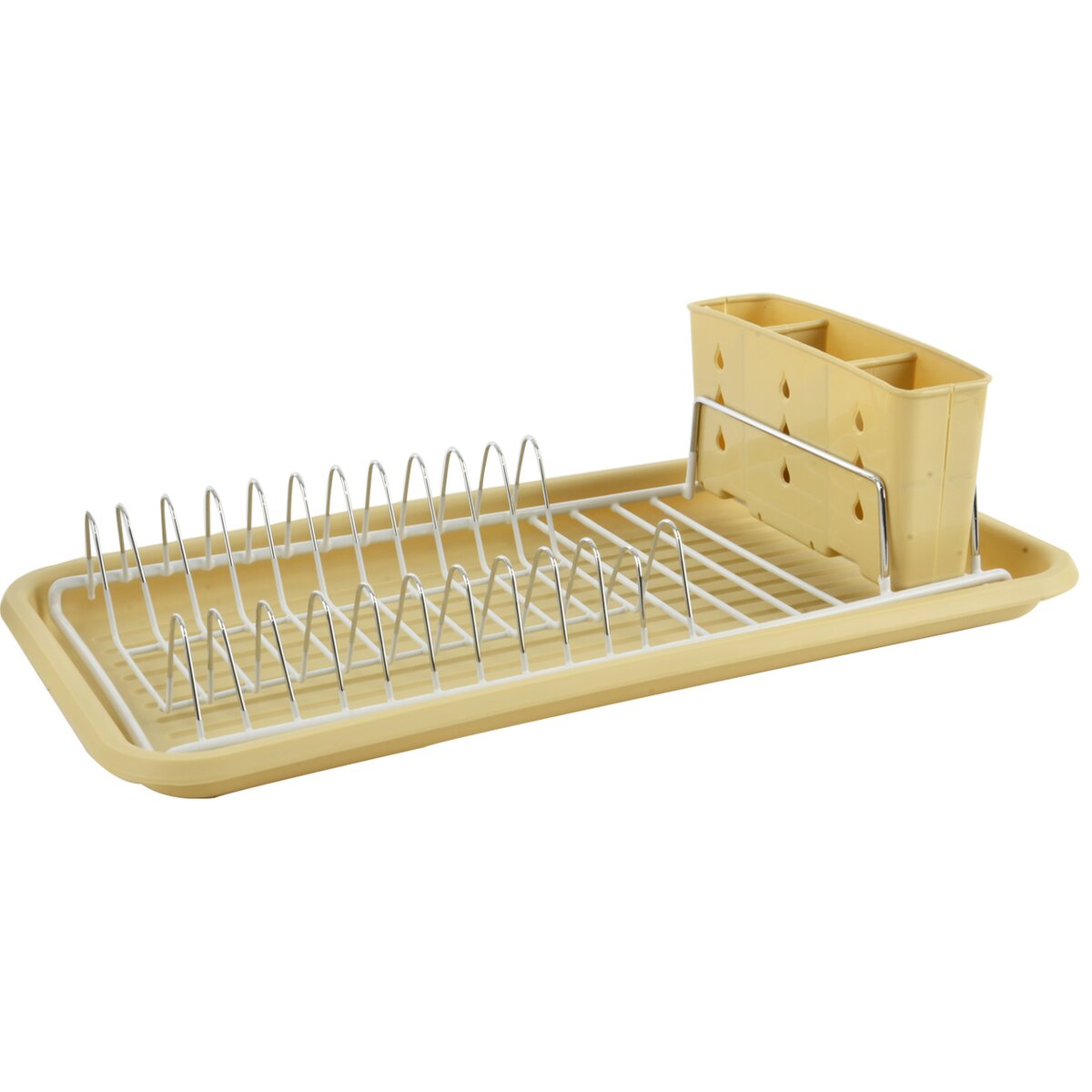 Kód produktu 150681Béžový plastový odkapávač na nádobí s drátěnou konstrukcí, o rozměrech 43×23×12 cm.