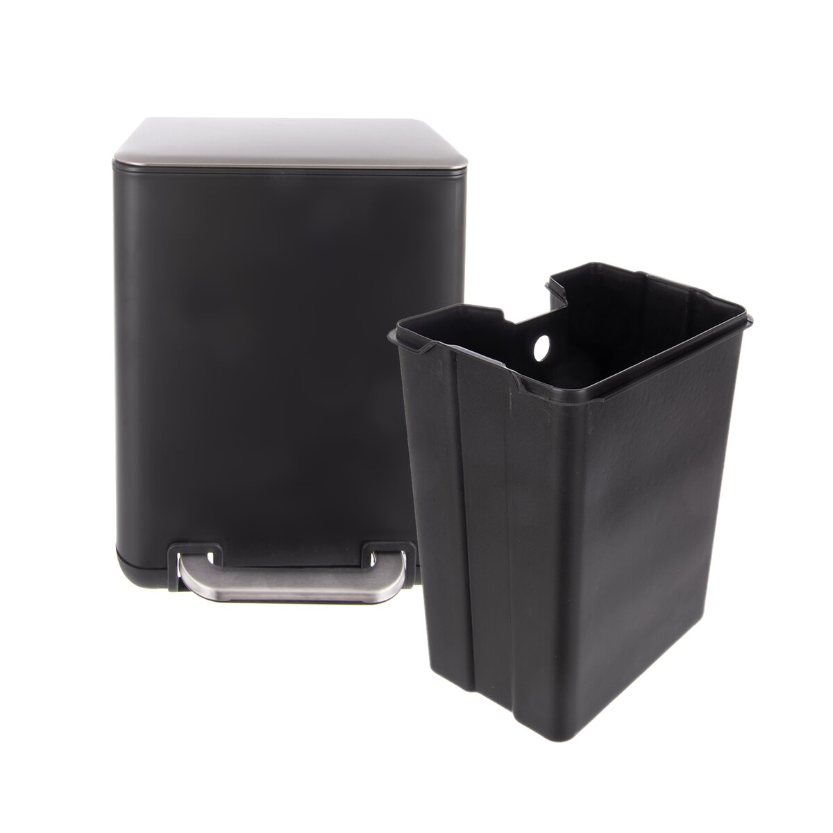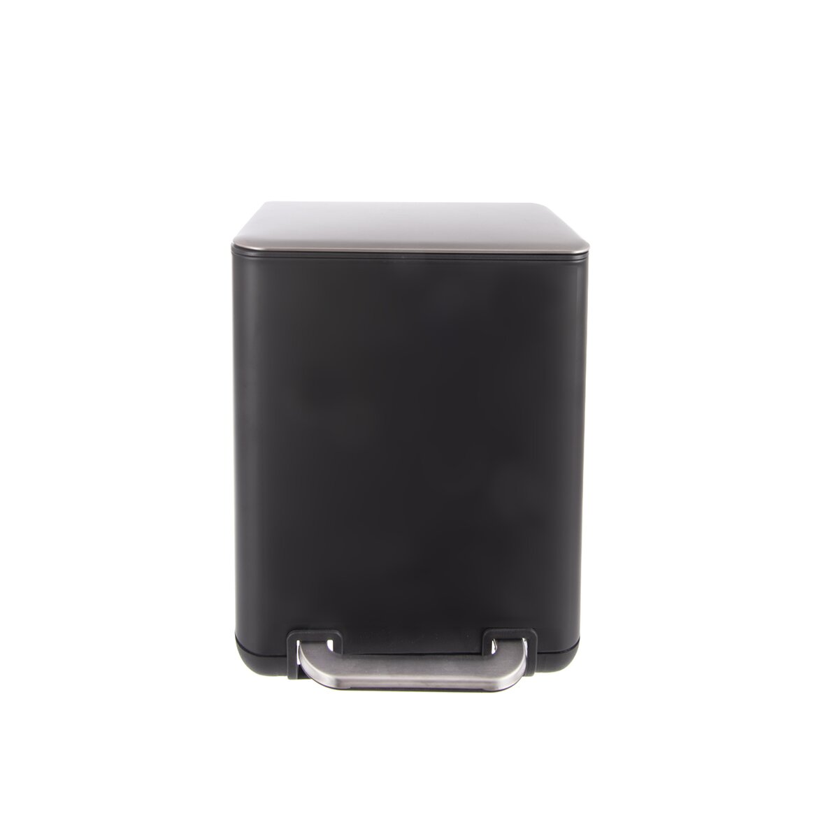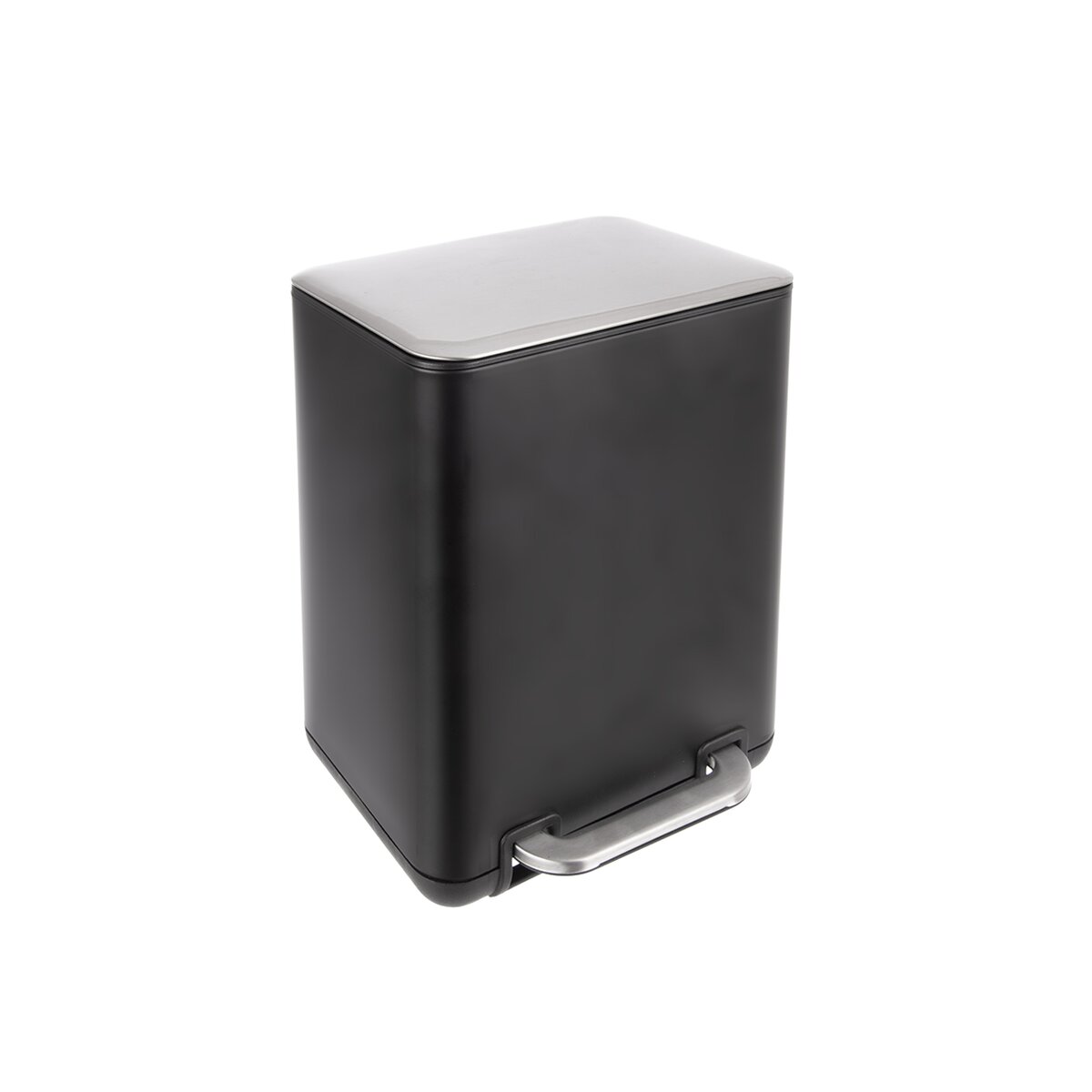 Tento černý odpadkový koš o objemu 6 l se otevírá se pomocí nožního pedálu, což zaručuje větší hygienu a pohodlí. Navíc má vyjímatelnou plastovou nádobu z PP, což usnadňuje manipulaci při vynášení odpadků nebo vkládání sáčků.