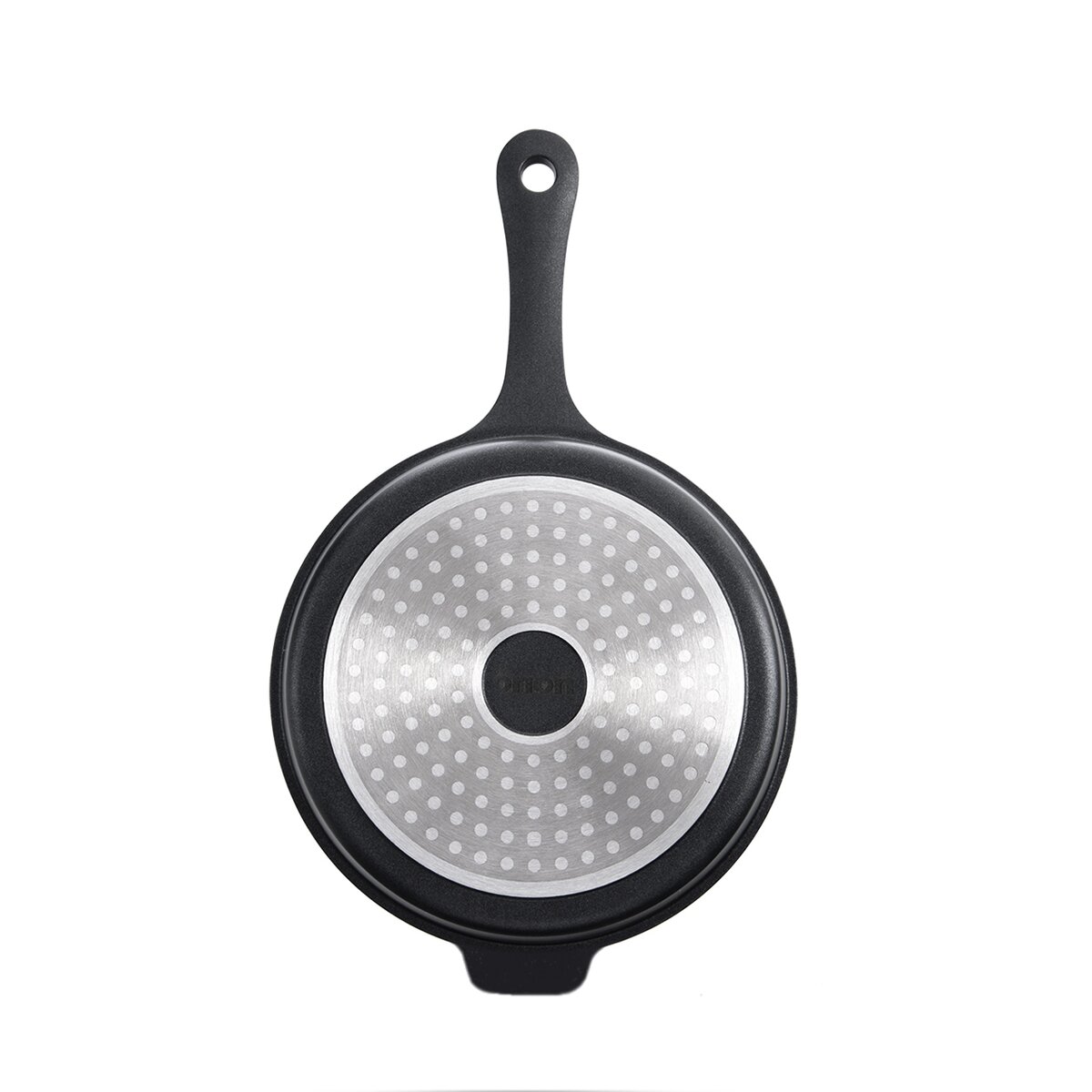 Doporučujeme: Používejte velikost plotýnky úměrnou průměru dna a dřevěné, silikonové nebo nylonové náčiní a kuchyňské chňapky, jelikož pánev včetně rukojeti je celokovová.