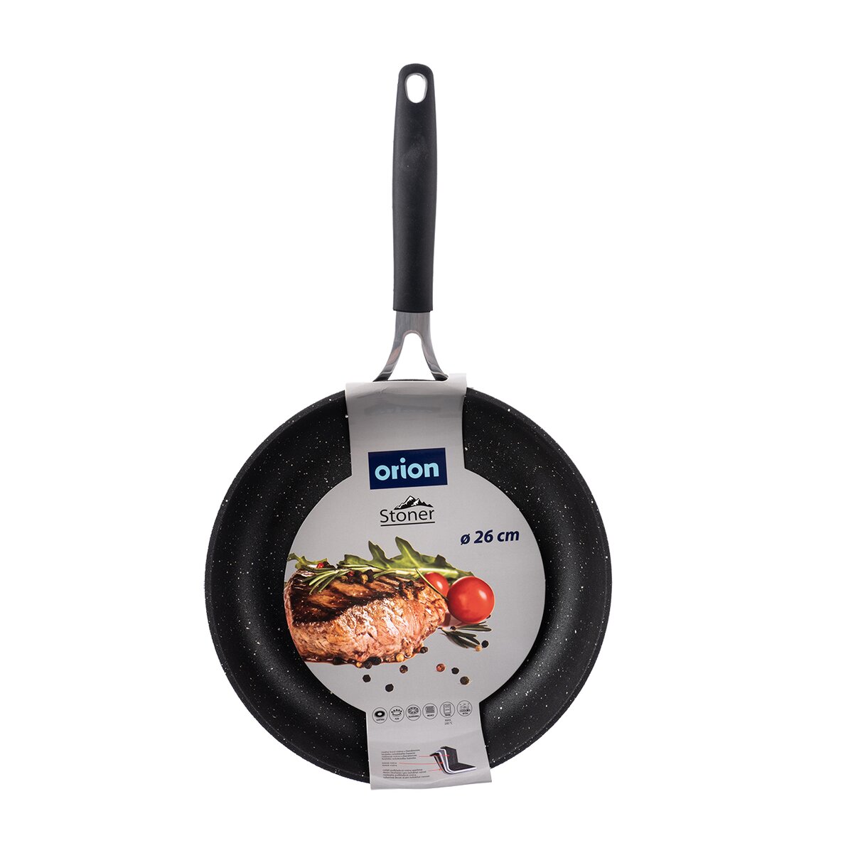 Kód produktu 112928Kvalitní pánev STONER pr. 26 cm s hrubým povrchem charakteru kamene, který zajistí rovnoměrné propečení. Vhodná na indukci, do trouby i myčky.