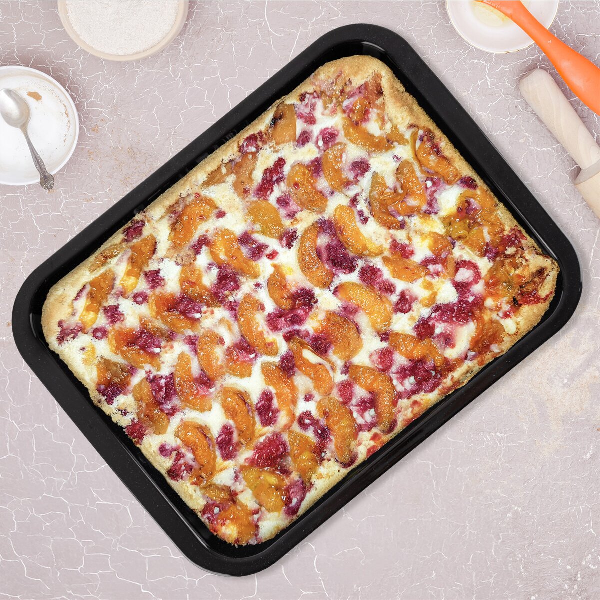 Vnitřní rozměr plechu je 36,5x28,5 cm, síla plechu je 0,6 mm. A pokud dojde k připečení, např. když vyteče náplň z jablečného štrúdlu, stačí jej nechat odmočit, a poté vložit do myčky nebo umýt ručně.