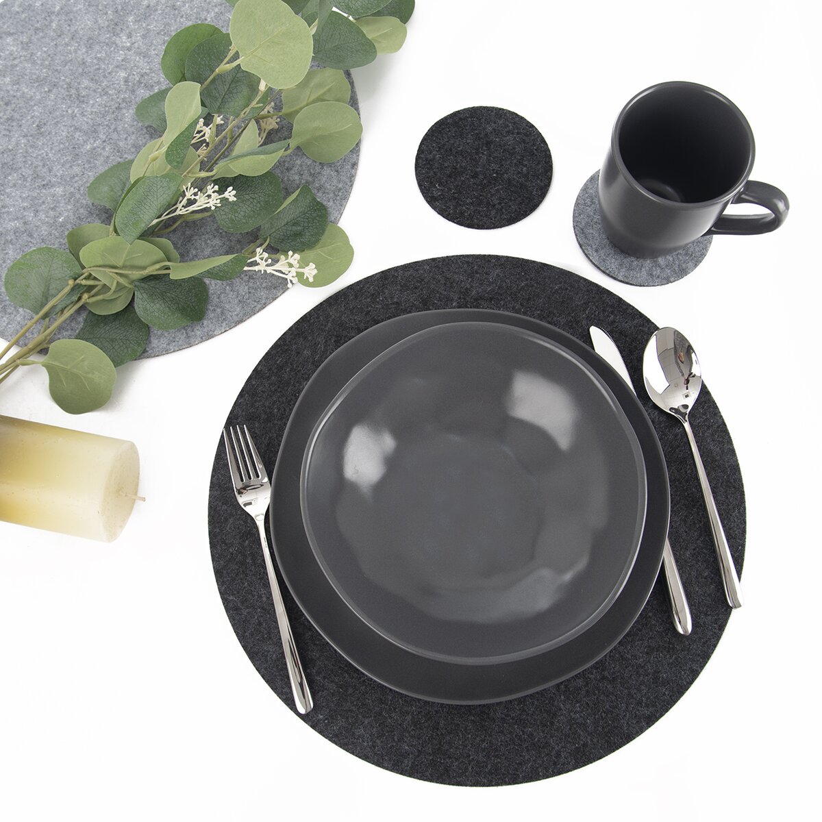 Kód produktu 710826Sada 6 kusů podtácků z filcu o průměru 10 cm zabrání poškození nábytku kolečky od mokrých nebo horkých sklenic či šálků.