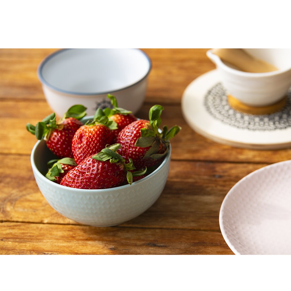 Miska s plastickým dekorem. Materiál: keramika. Vhodný do myčky i MVT. V několika barevných variantách. Rozměry: objem 0,7 l, pr. 14 cm, v. 7 cm.