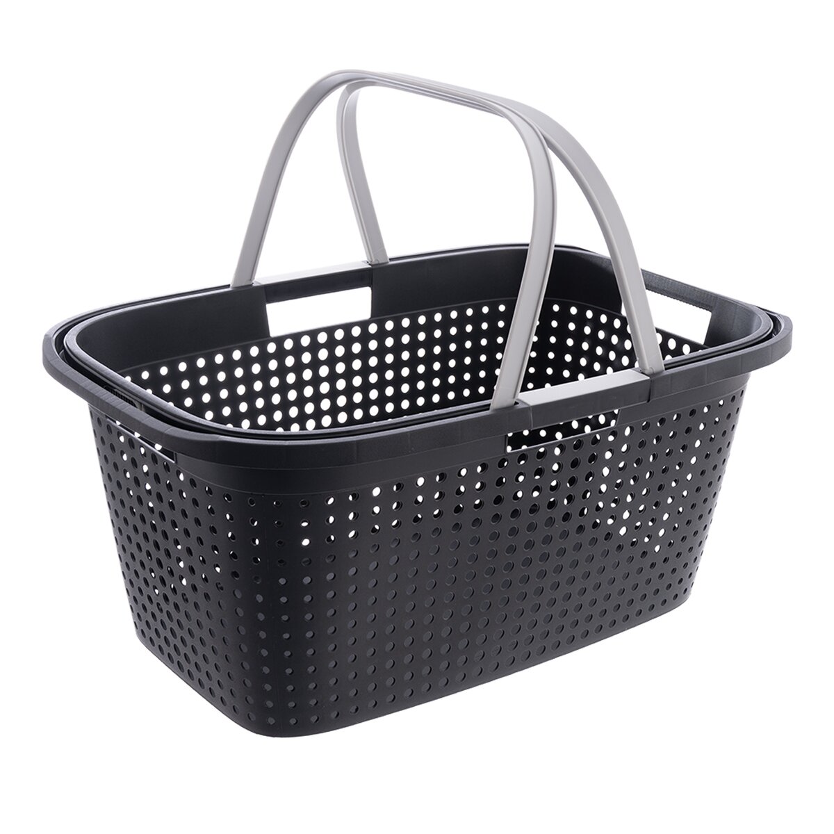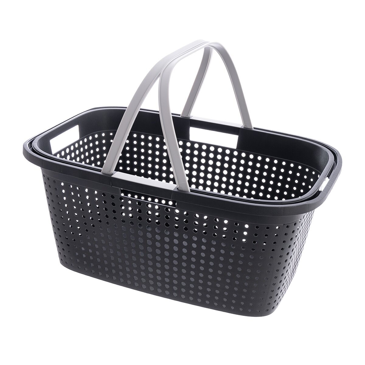 Tento plastový koš má rozměry 59,5x39x26 cm. Navíc se snadno přenáší díky rukojetím, které má ze všech čtyř stran, pro pohodlnější přenášení lze zvednout i dvě sklopná držadla jako u nákupního košíku.