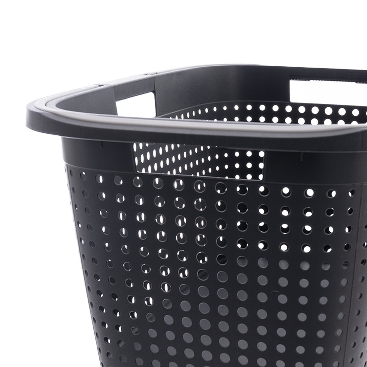 Kód produktu 730569Otevřený šedý prádelní koš o objemu 38 l je určen k přenášení prádla, lze využít jak rukojeti po stranách, tak i sklopná držadla.