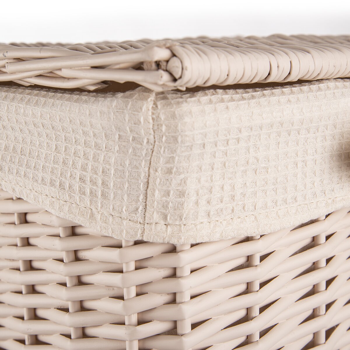 Tento béžový koš s víkem vyrobený z vrbového proutí je praktický na uložení špinavého prádla či jiných věcí v domácnosti. Uvnitř se nachází odnímatelná textilie vyrobená z 65% bavlny a 35% polyesteru, kterou lze v případě potřeby prát v pračce.