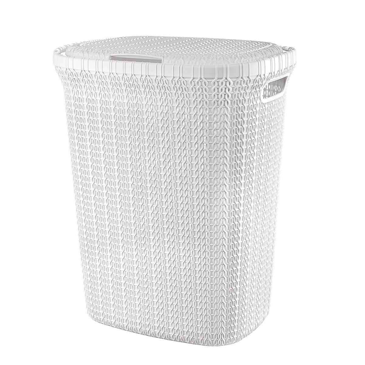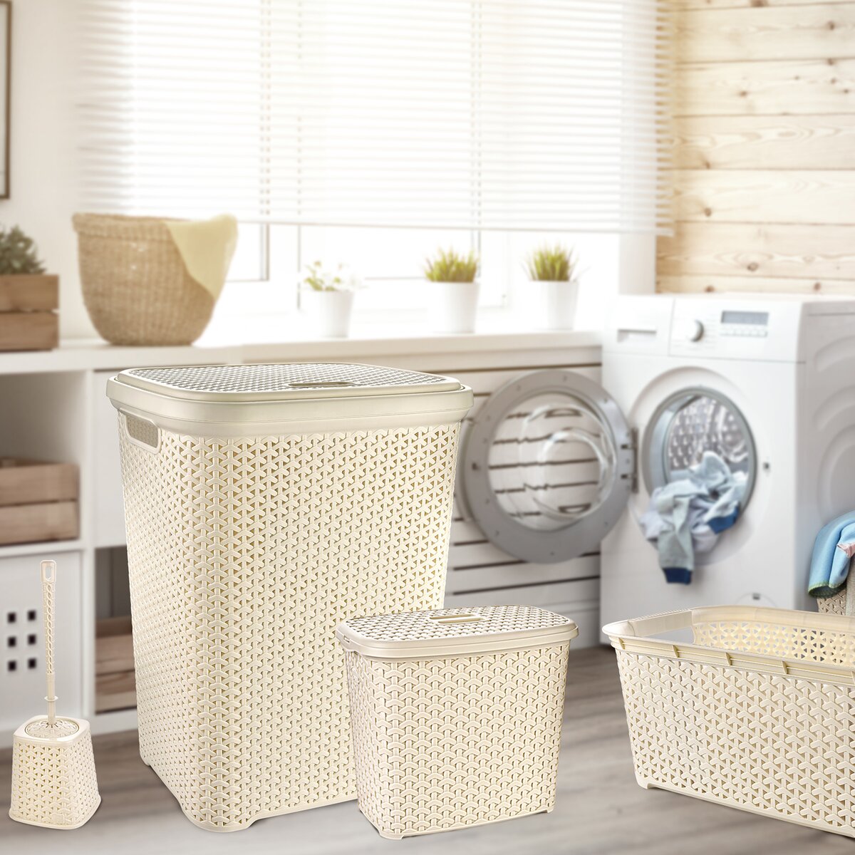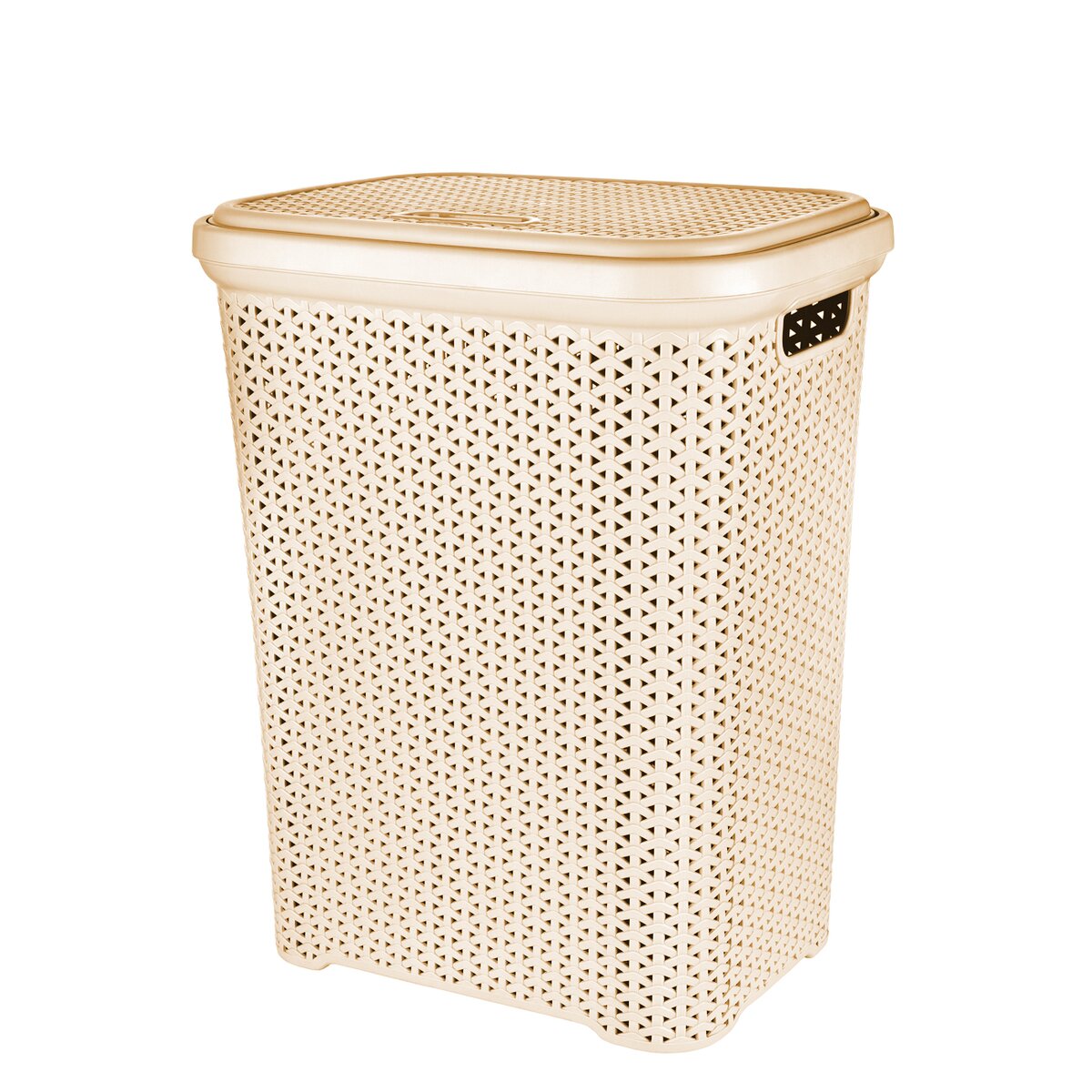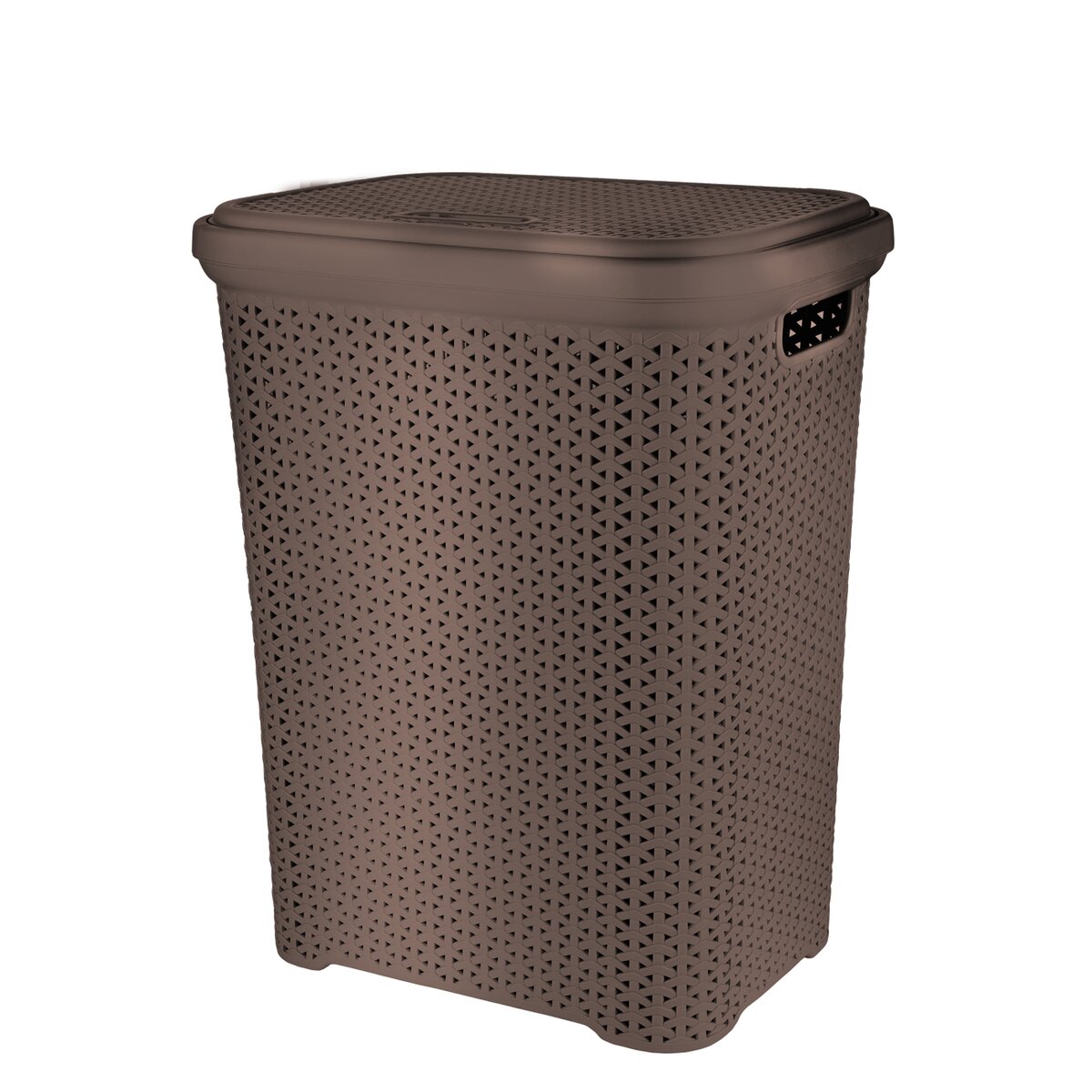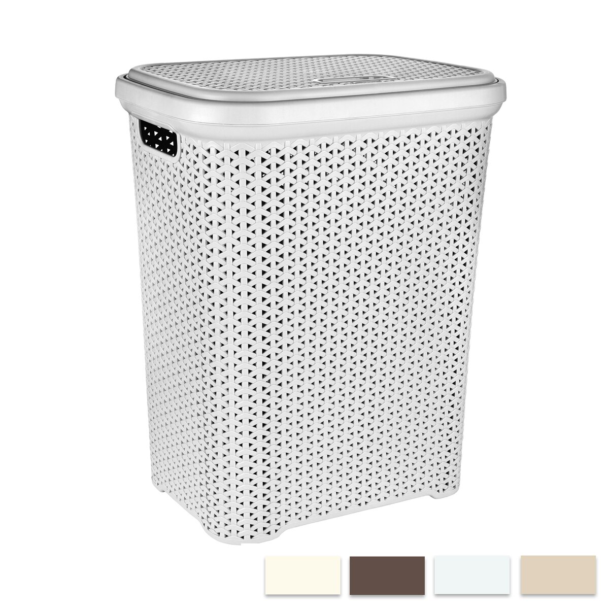 Koš na prádlo s odklápěcím víkem. Materiál: plast. Dekor ratanu. Rozměry: 44x33x56 cm.
