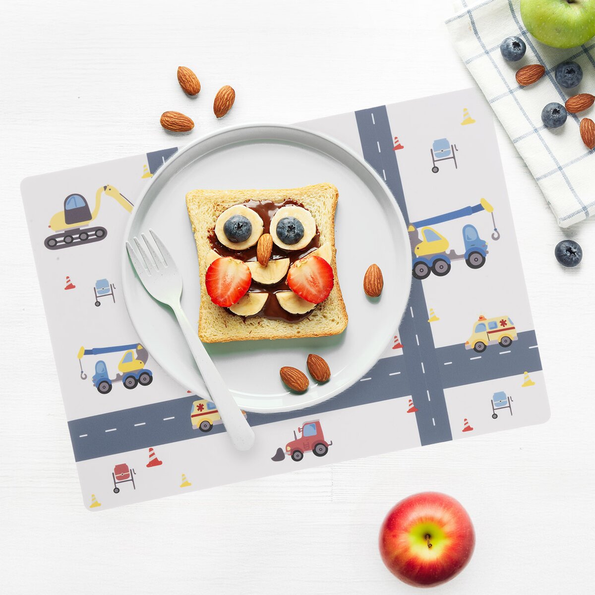 Kód produktu 710855Dětské prostírání s motivem aut, které ochrání stůl před poškozením a ušpiněním.