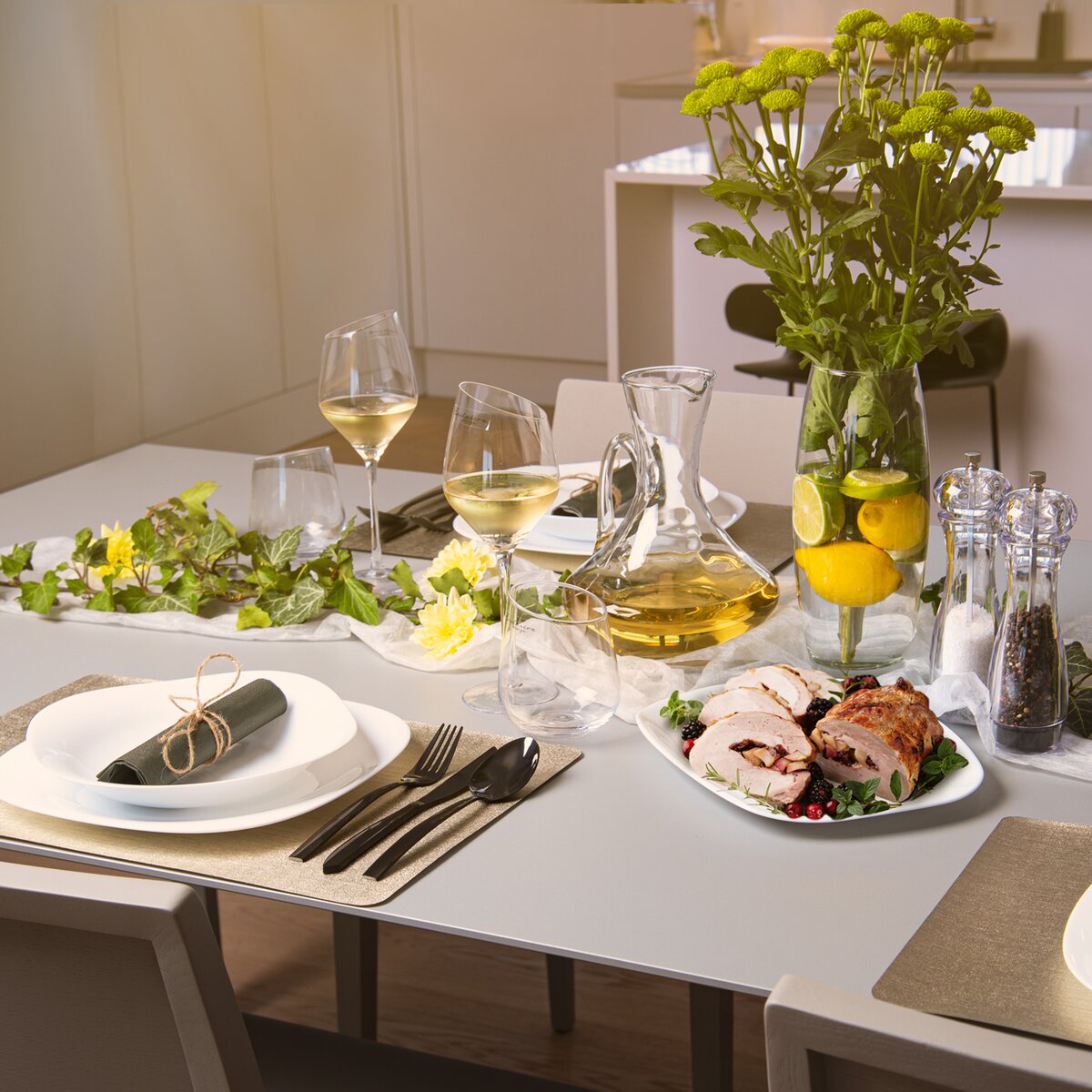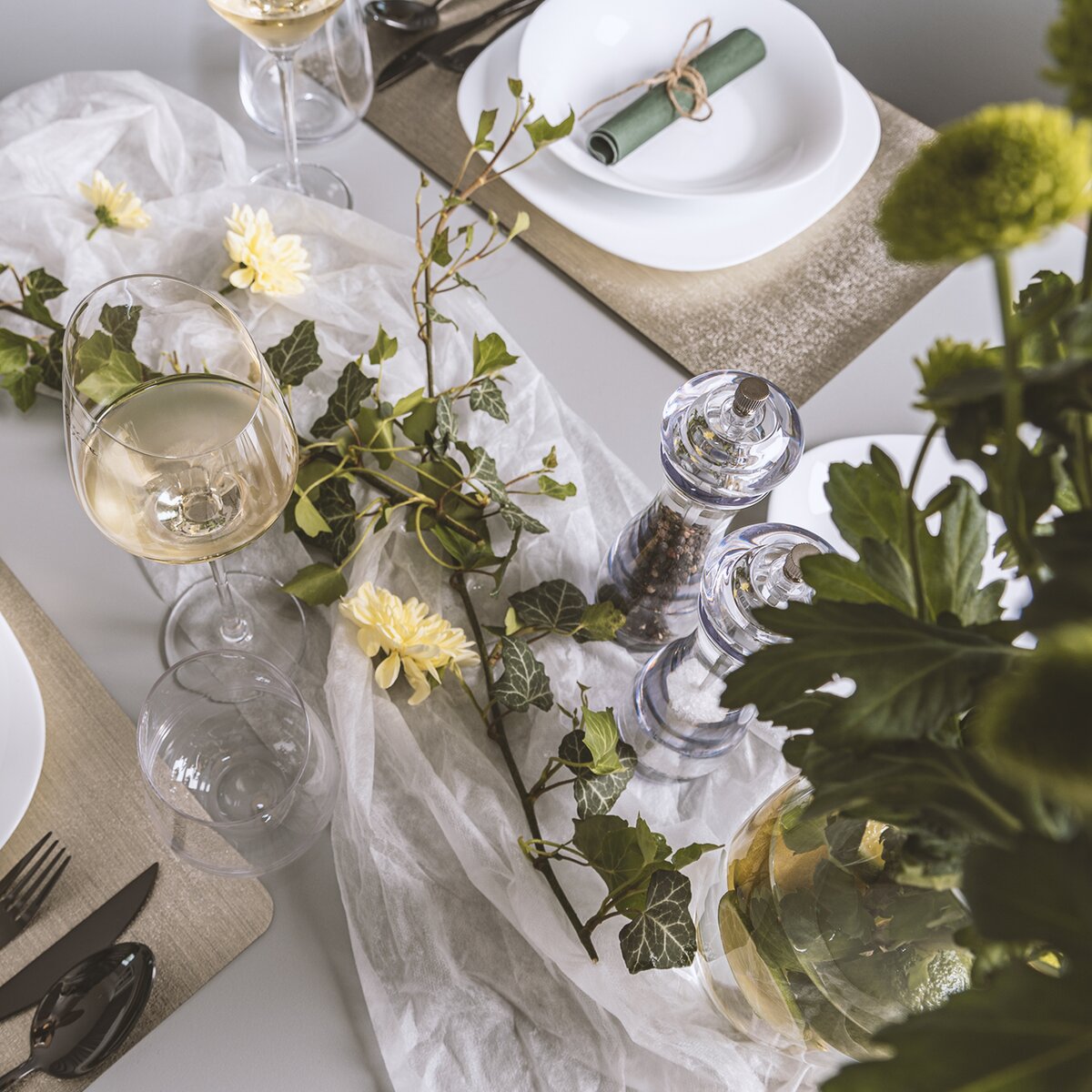 Podle stylu, barev vaší kuchyně, jídelny můžete i své stolování vyladit. Díky decentnímu, ale přitom luxusně vypadajícímu metalickému tónu bude toto prostírání nadčasové.