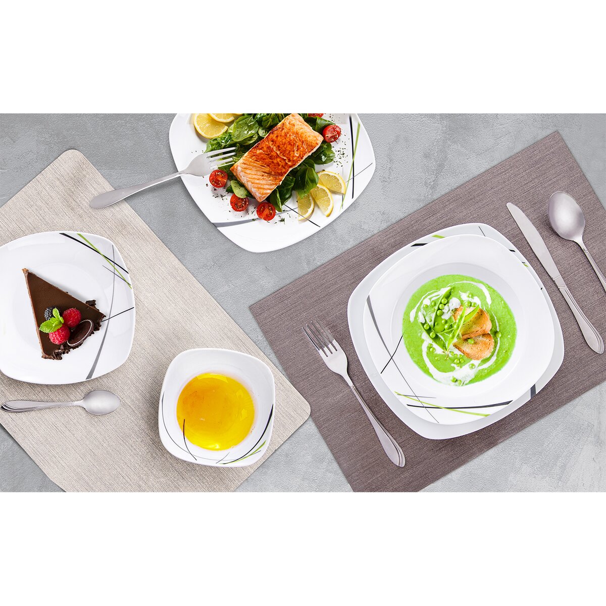 Podle stylu, barev vaší kuchyně, jídelny můžete i své stolování vyladit. Díky decentnímu, jednoduchému tónu bude toto jemně strukturované prostírání nadčasové.