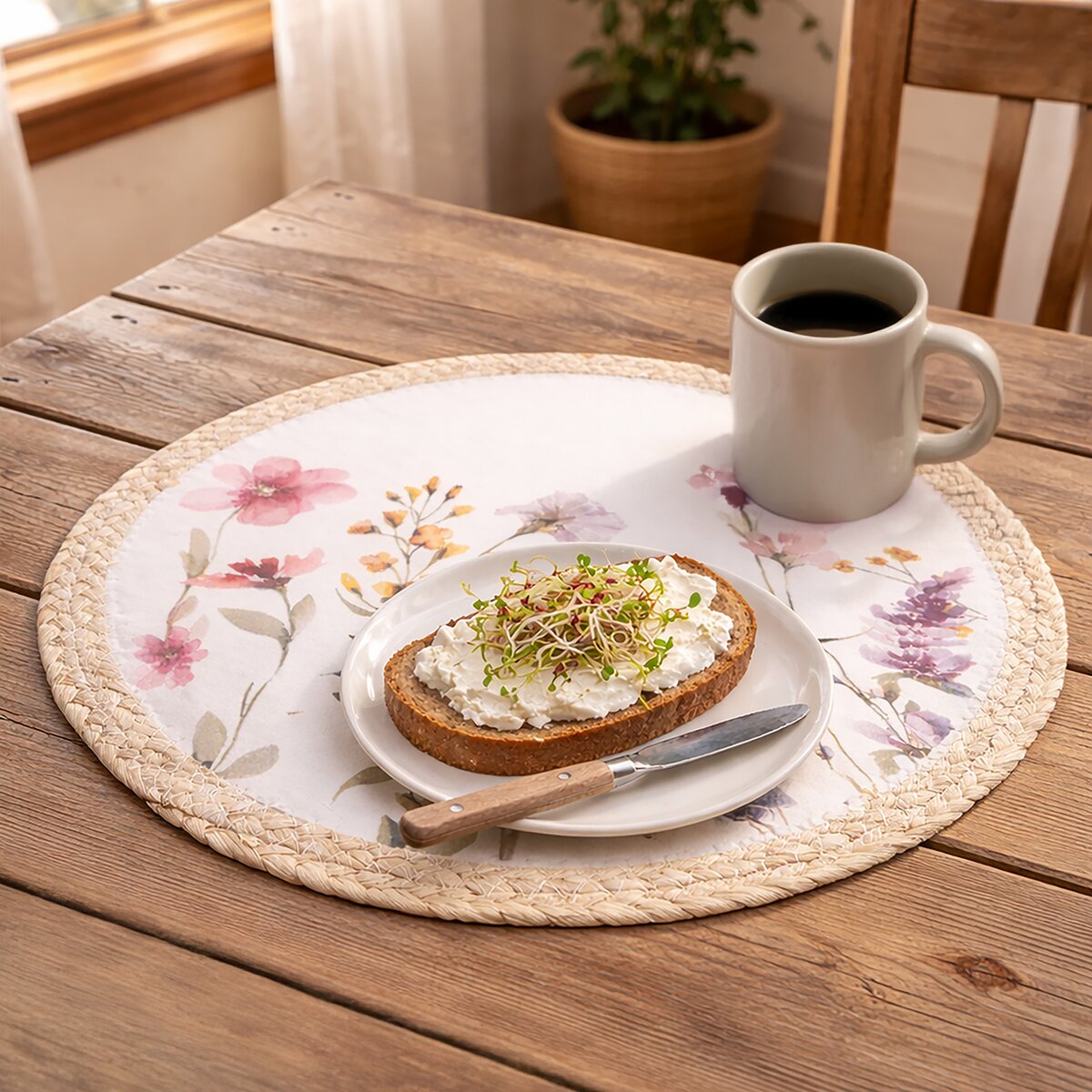 Kód produktu 728097Kulaté prostírání MÁK s lemem z kukuřičného vlákna má průměr 38 cm a zdobí jej dekor lučních květin. Podtrhne uvolněný styl stolování a ochrání stůl před poškozením a ušpiněním.