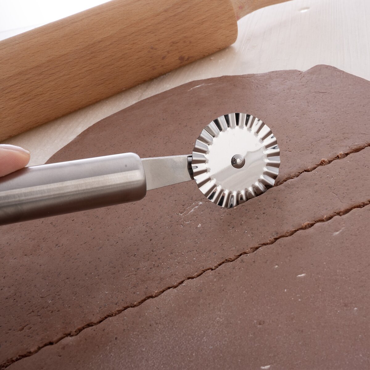 Vlnitý břit vytváří ozdobné okraje, které dodají výslednému pokrmu dekorativní vzhled – ideální pro knedlíky, buchty, sušenky nebo slané koláče.