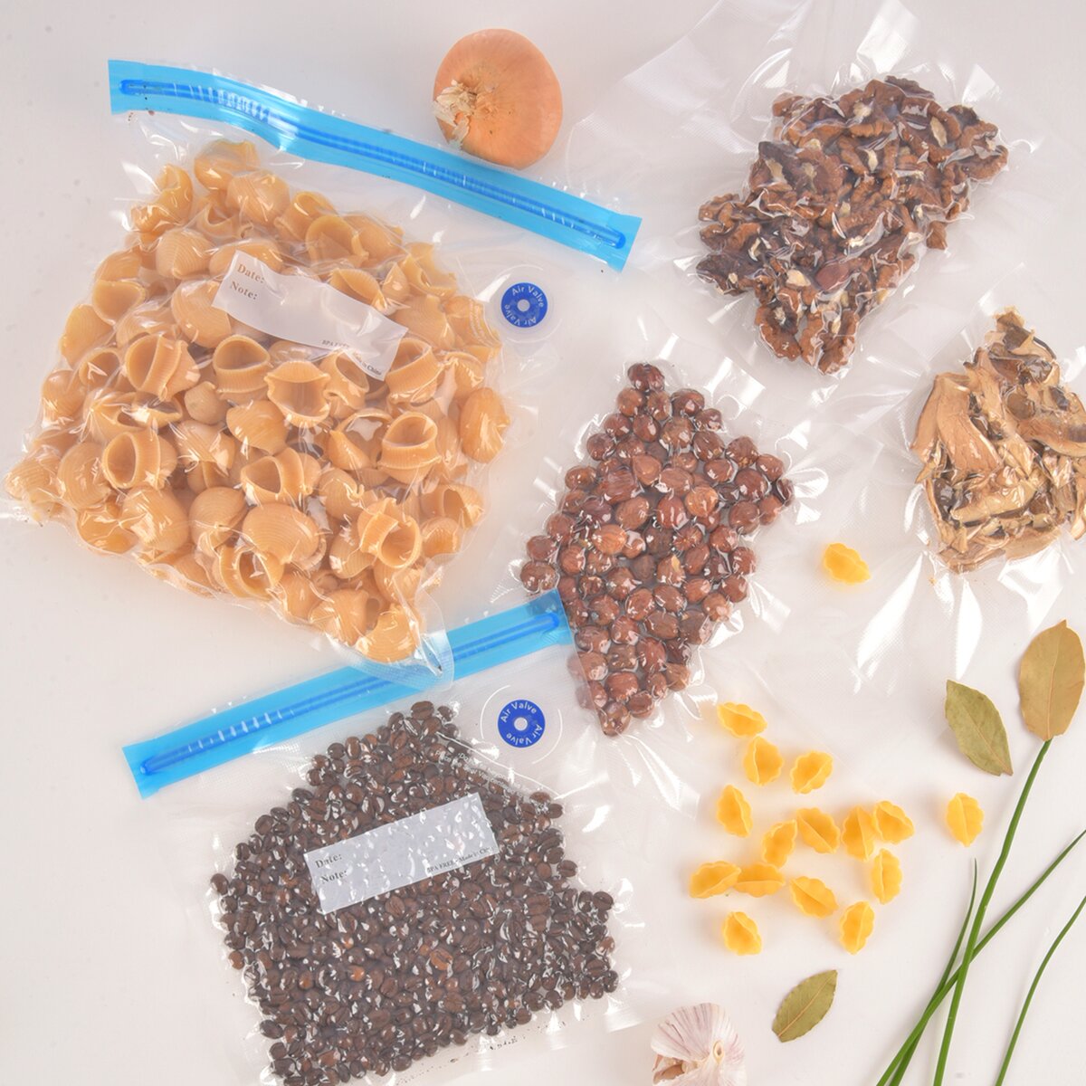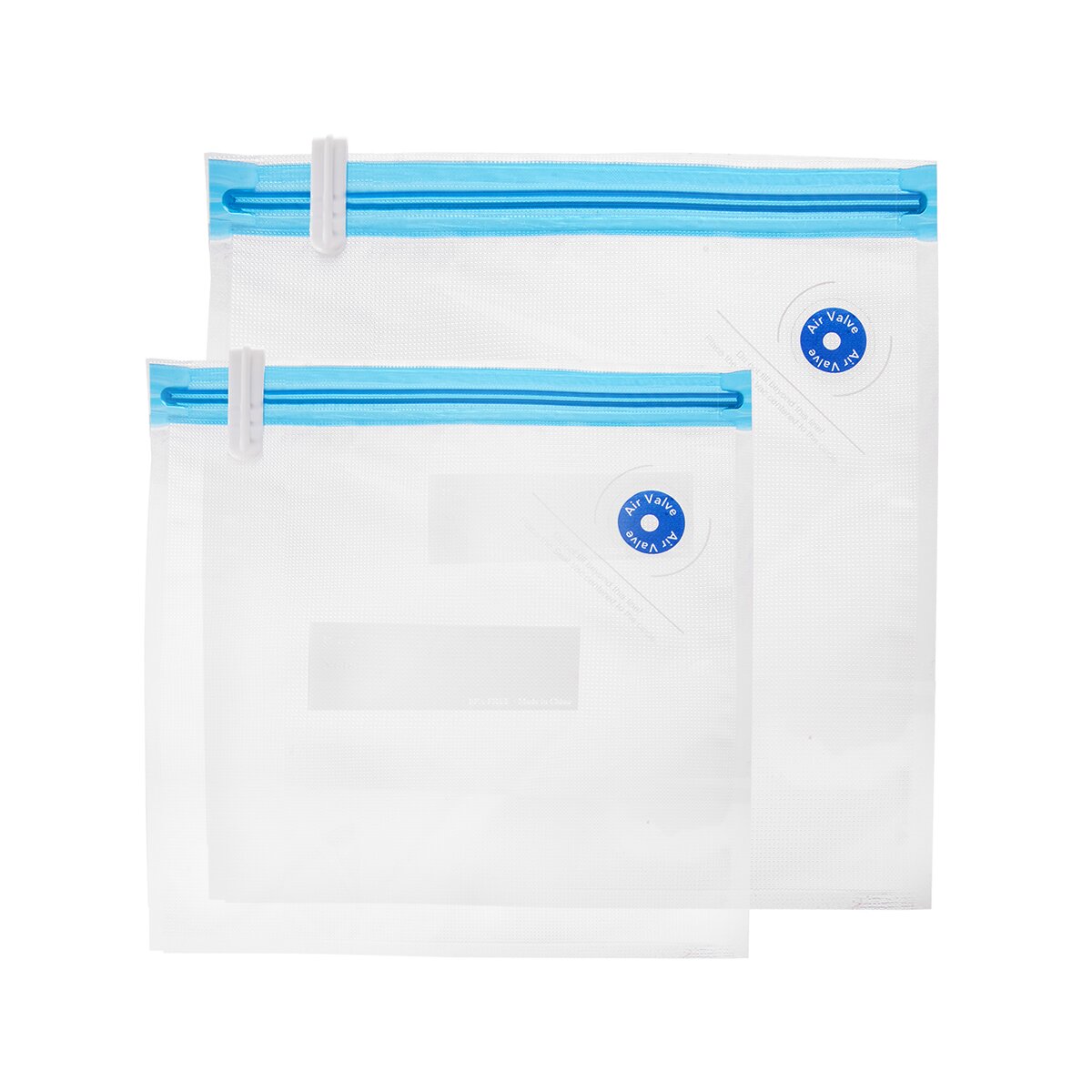 Tyto sáčky ve dvou velikostech (15 ks velikosti 22x21 cm a 15 ks velikosti 26x28 cm) jsou vyrobeny z nylonu (PA)-PE, snesou použití od -20 °C do +110 °C a udrží potraviny až 5x déle čerstvé. Neobsahují BPA, lze je po použití ručně umýt a znovu je použít. Míra plnění je vyznačena ryskou.