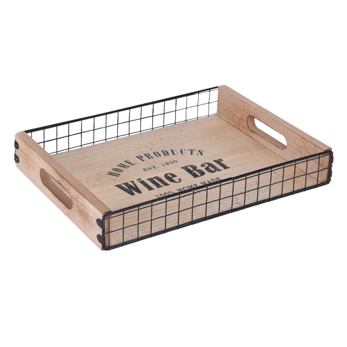 Kód produktu 153806Dřevěný servírovací tác o rozměrech 34×24×5 cm s drátěným okrajem a Vintage dekorem.