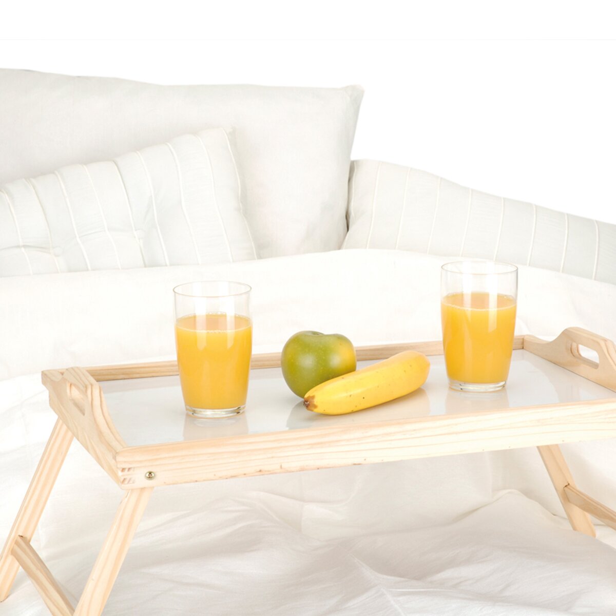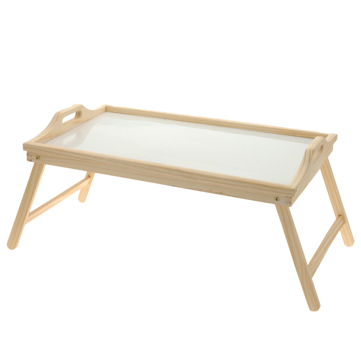 Kód produktu 150471Dřevěný tác/podnos do postele užijete nejen při romantických snídaních o víkendu, ale také v případě, že jste nemocní – na servírování čaje, svačiny na posilnění. Díky sklopným nožkám je skladný, ucha umožňují využít ho také jako klasický servírovací podnos. Materiál: dřevo, sololit. Rozměry: 50x30x24 cm.