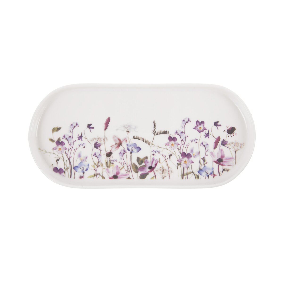 Kód produktu 153899Servírovací porcelánový tác LOUKA oválného tvaru má délku 25 cm a je zdoben něžným dekorem lučních květin.