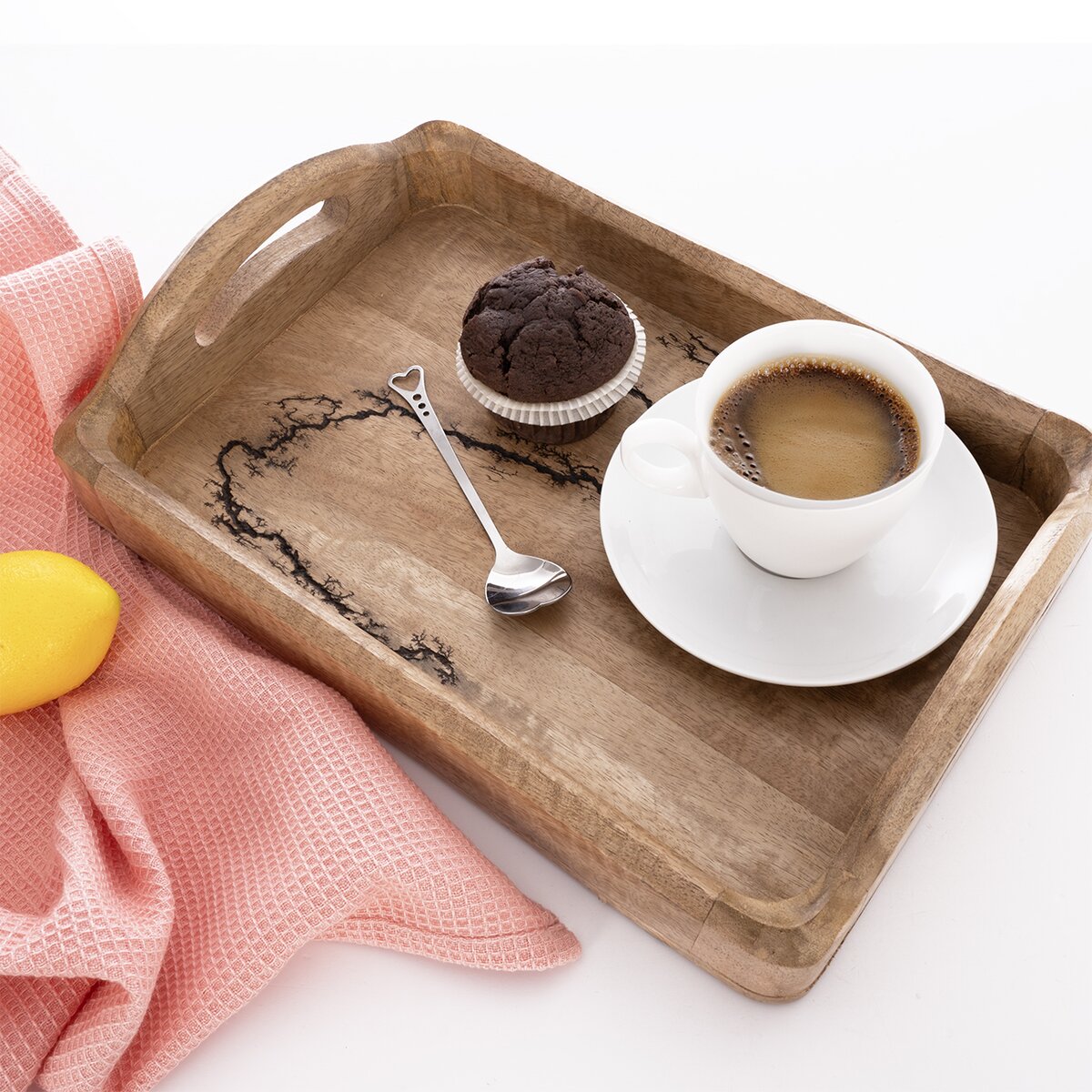 Kód produktu 153808Elegantní a praktický tác z mangového dřeva vhodný pro servírování kávy, dezertů a drobného občerstvení s originálním designem.