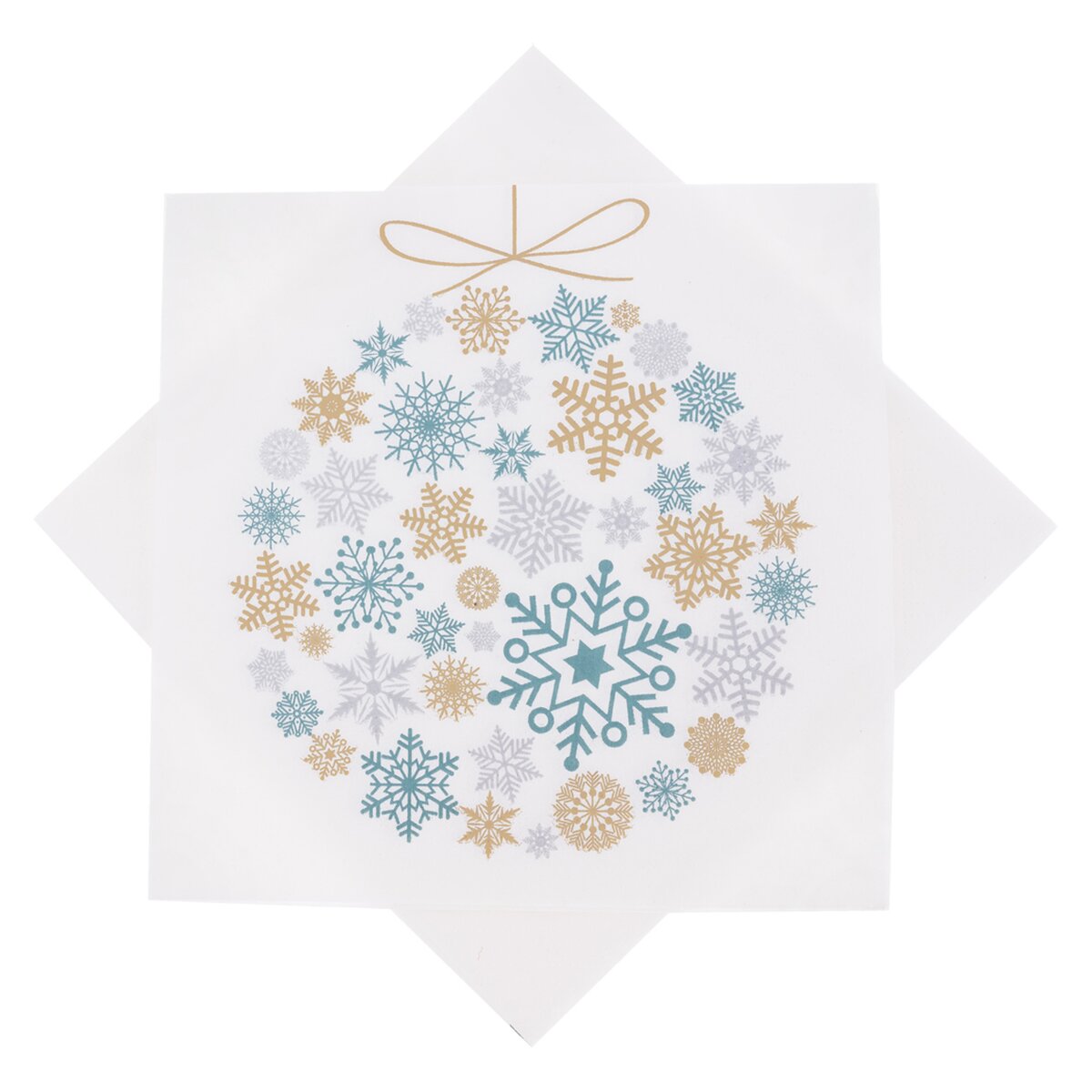 Více informacíV době Adventu a o Vánocích se každá domácnost změní v útulné sváteční místo. K slavnostnímu prostírání stolu patří i hezké ubrousky. Motiv sněhových vloček ve tvaru baňky na bílém podkladu se skvěle hodí ke štědrovečerní tabuli. Ubrousky vyniknou i u víkendové snídaně s nadýchanou vánočkou a horkým kakaem nebo doplní talíř s voňavým cukrovím.