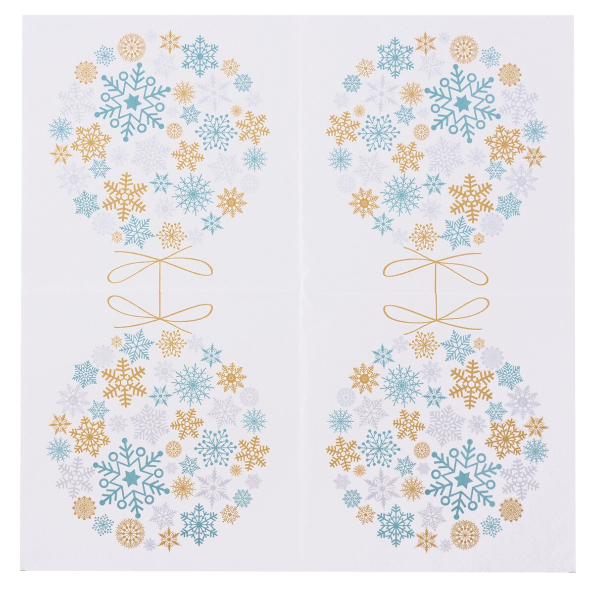 Kód produktu 842376Sada 20 ks papírových ubrousků v bílé barvě s motivem vloček, tvořících baňku. Ubrousky mají velikost 33x33 cm a doplní prostřený stůl o vánočních svátcích i v období Adventu.
