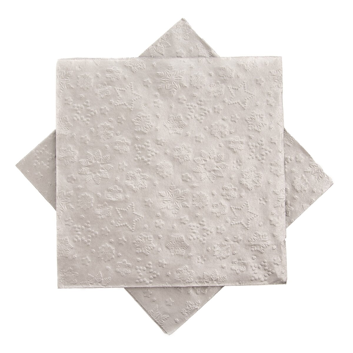 Ubrousek s plastickým dekorem. Perleťový, šedivý. Sada 20 ks. Materiál: papír. Rozměry: 33x33x cm.