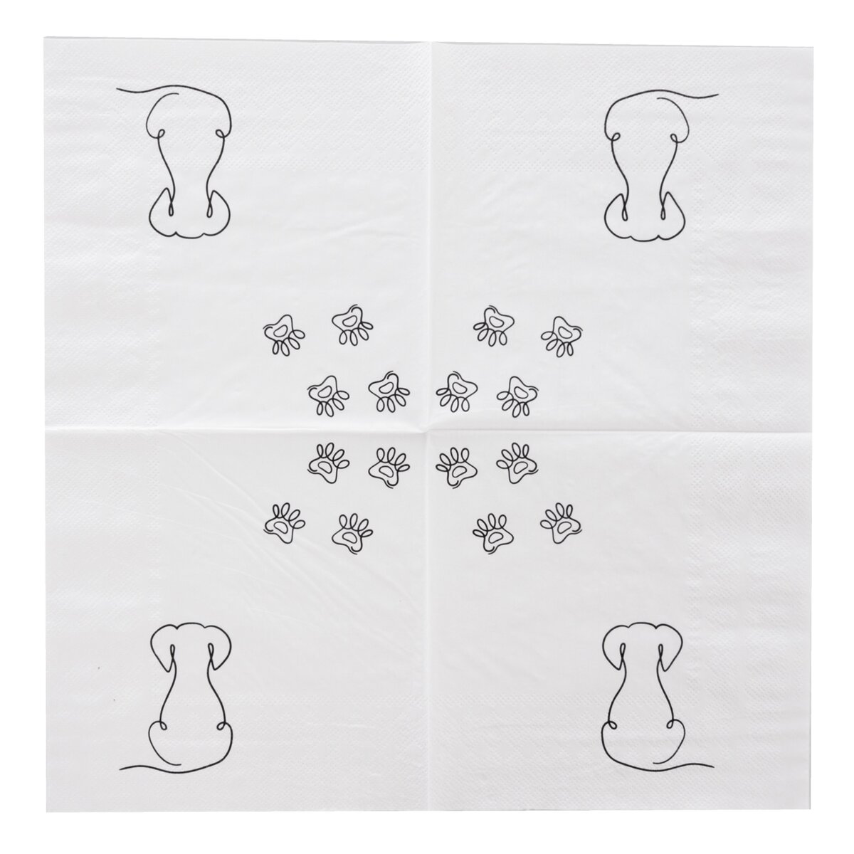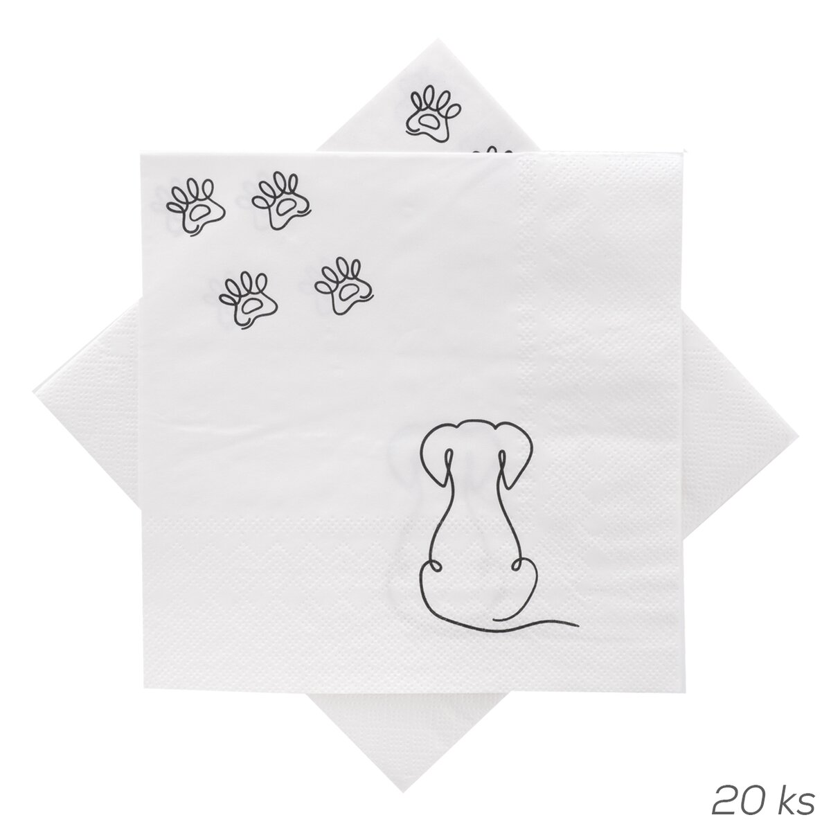 Sada 20 ks bílých papírových ubrousků z kolekce PEJSEK, o velikosti 33x33 cm, doplní prostřený stůl, piknikový košík, posezení na terase, pomůže zabalit svačinu.