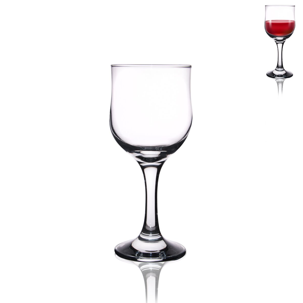 Kód produktu 122780Sklenice na červené víno. Materiál: sklo. Rozměry: objem 0,24 l, pr. 7 cm, v. 17 cm.