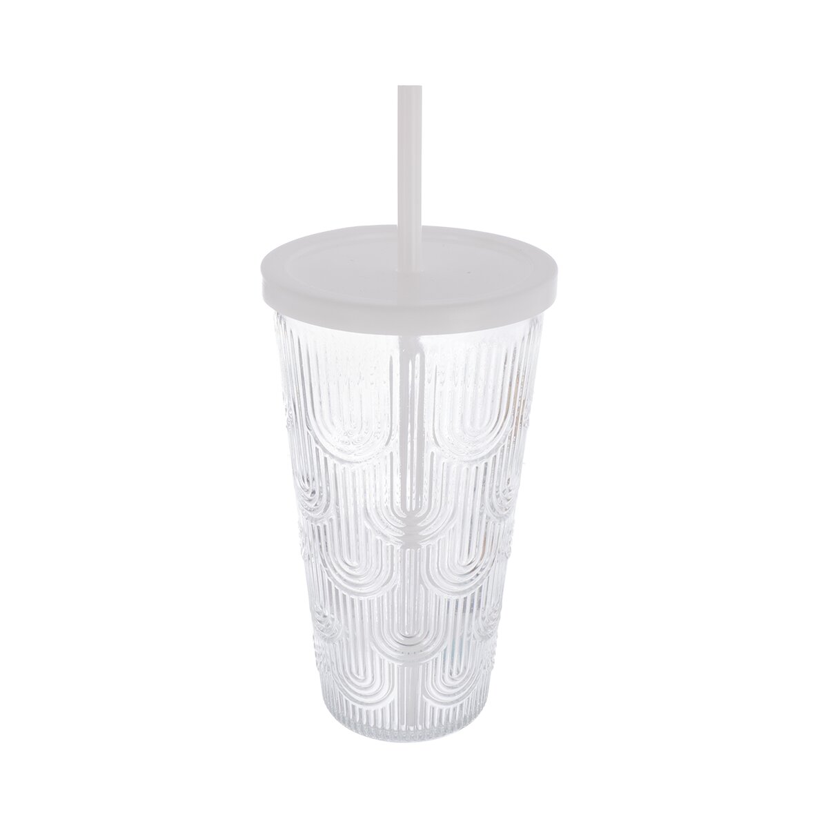 Kód produktu 129358Skleněná sklenice s víčkem a brčkem ideální na studené nápoje, domácí limonády i kávu.