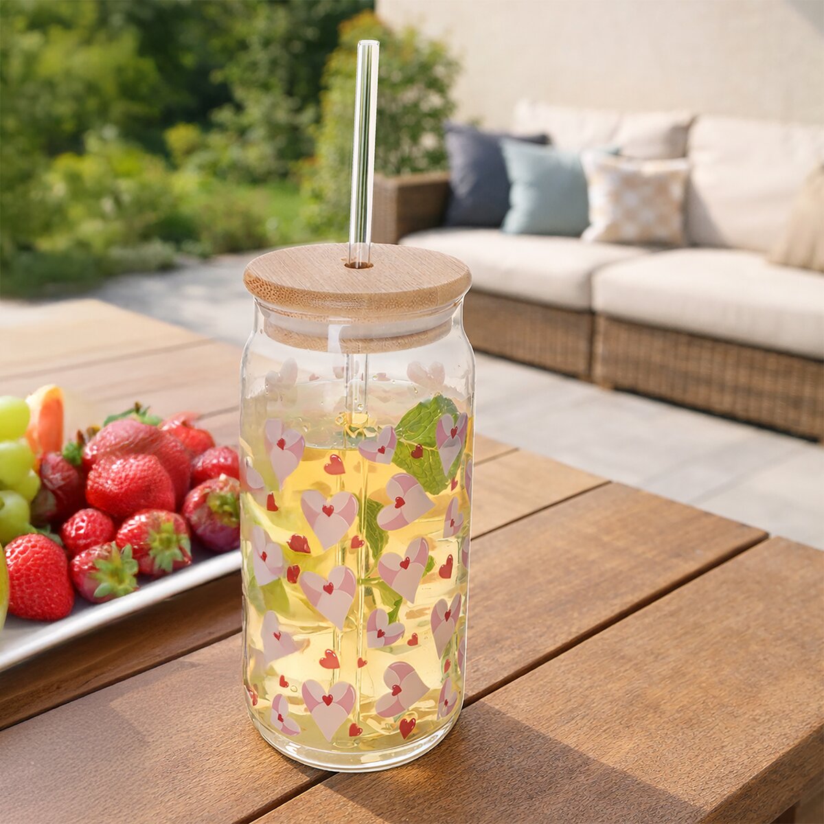 Víčko umožňuje přímé pití pomocí skleněného brčka délky 21,5 cm. Sklenici lze používat samostatně i bez víčka a brčka. Skvěle se hodí pro domácí limonádu, ovocnou šťávu nebo jakýkoliv jiný oblíbený nápoj.