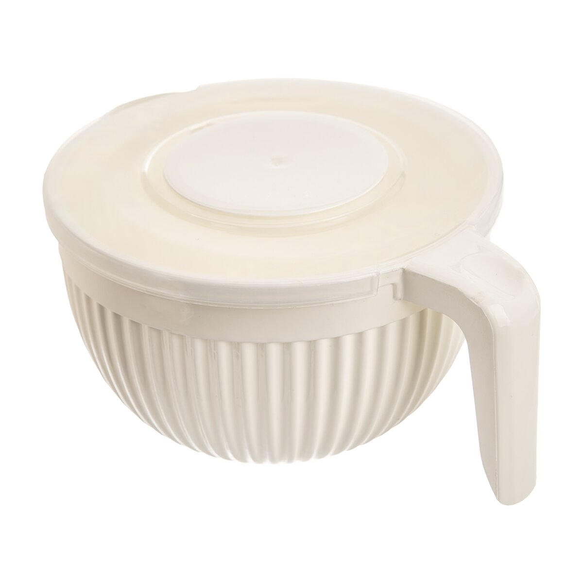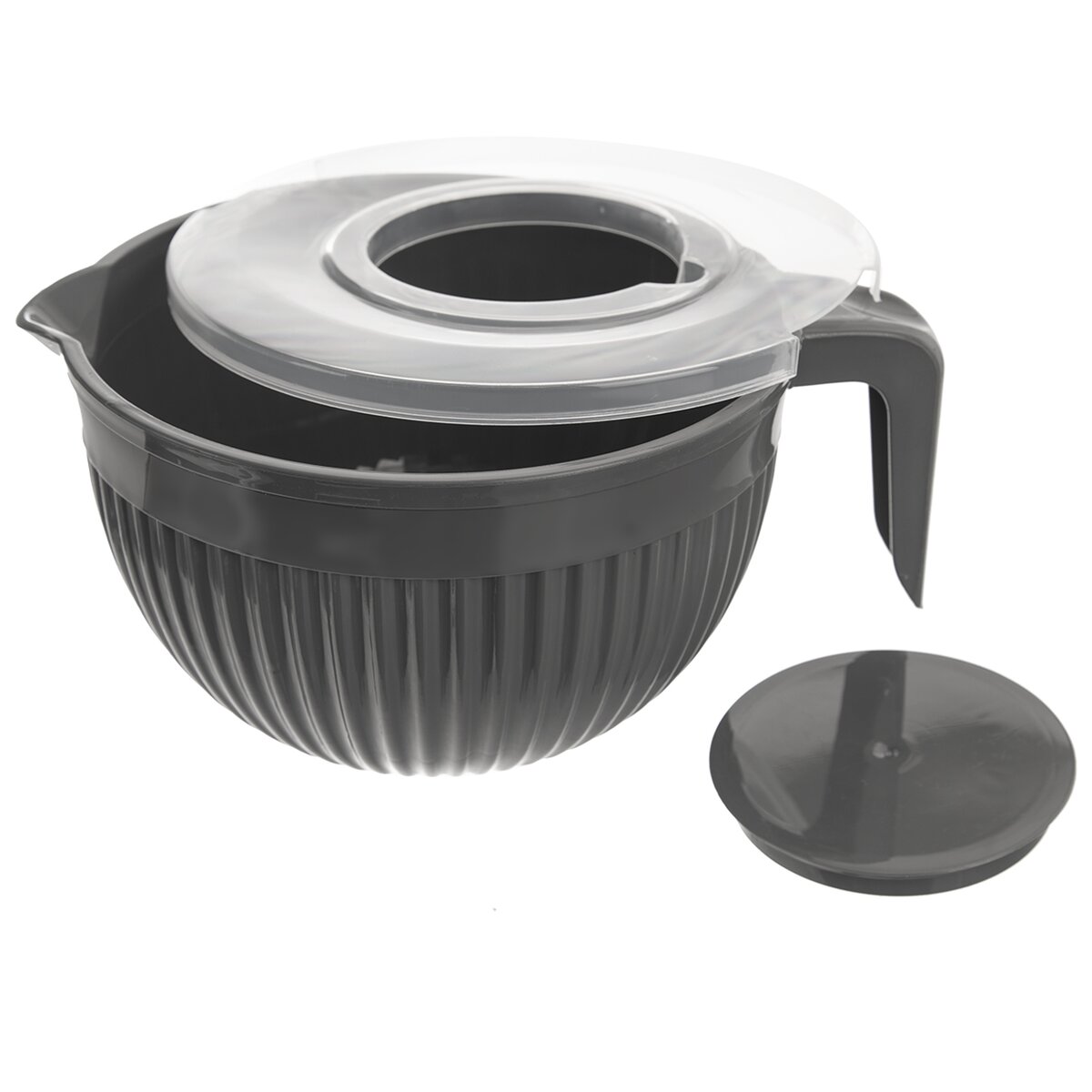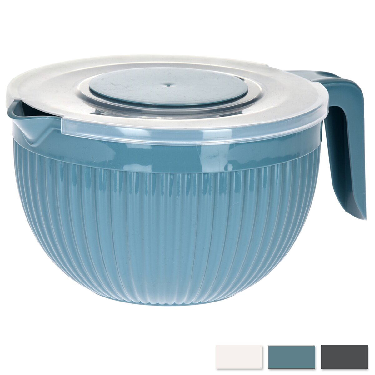 Kód produktu 128603Plastová šlehací mísa o objemu 3,5 l s výlevkou, praktickým dvojdílným víčkem, které zabrání rozstřikování šlehaného sněhu, těsta nebo krémů.