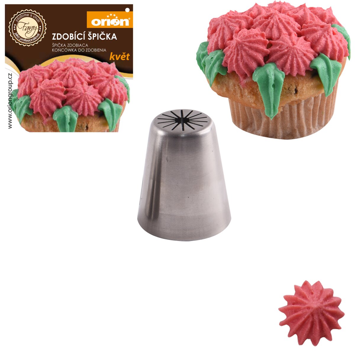Kód produktu 153018Špička zdobicí ruská - květ. Využijete ji na zdobení dortů a zákusků krémem. Materiál: nerez. Rozměry: pr. 2 cm, v. 4,5 cm.