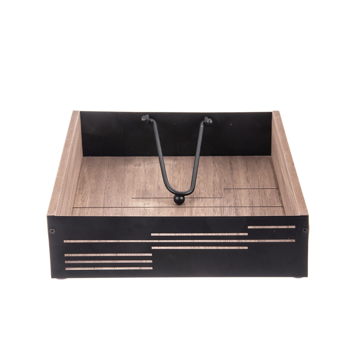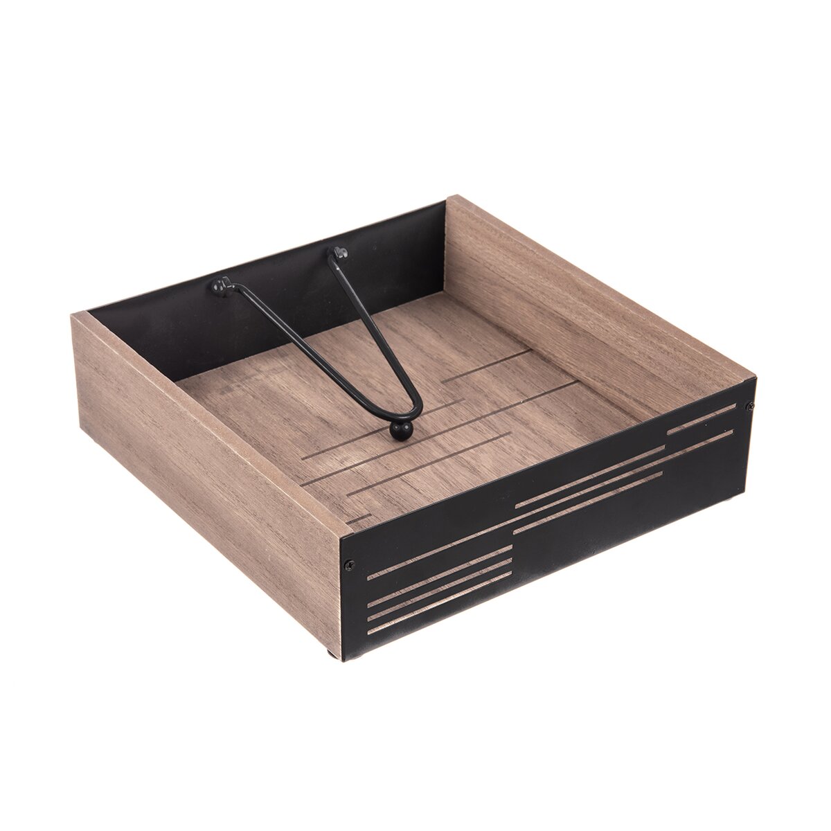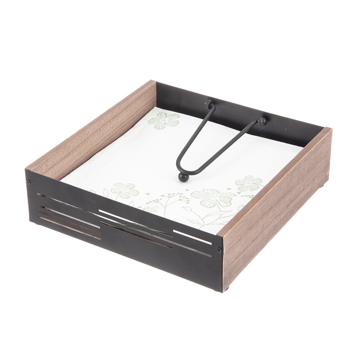 Kód produktu 154324Stojan LINE na ubrousky pro domácí i venkovní stolování je vyroben z dřevovláknité desky a kovových prvků s černým nástřikem. Díky pohyblivé kovové záklopce udrží ubrousky na místě i při větrném počasí.