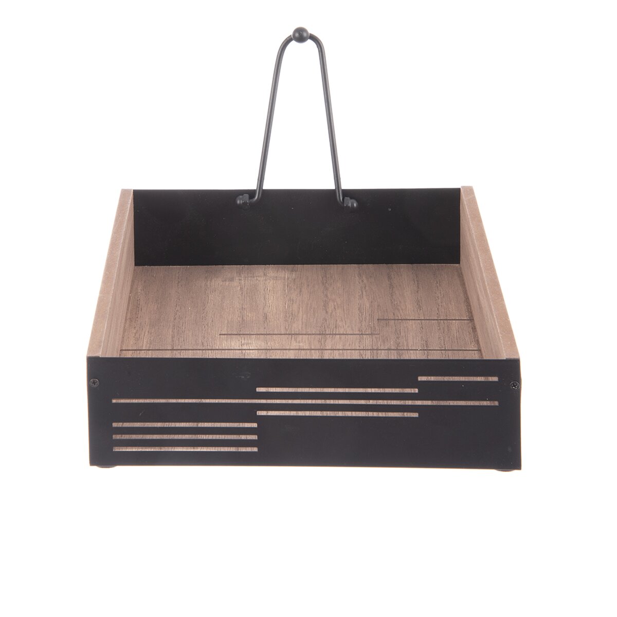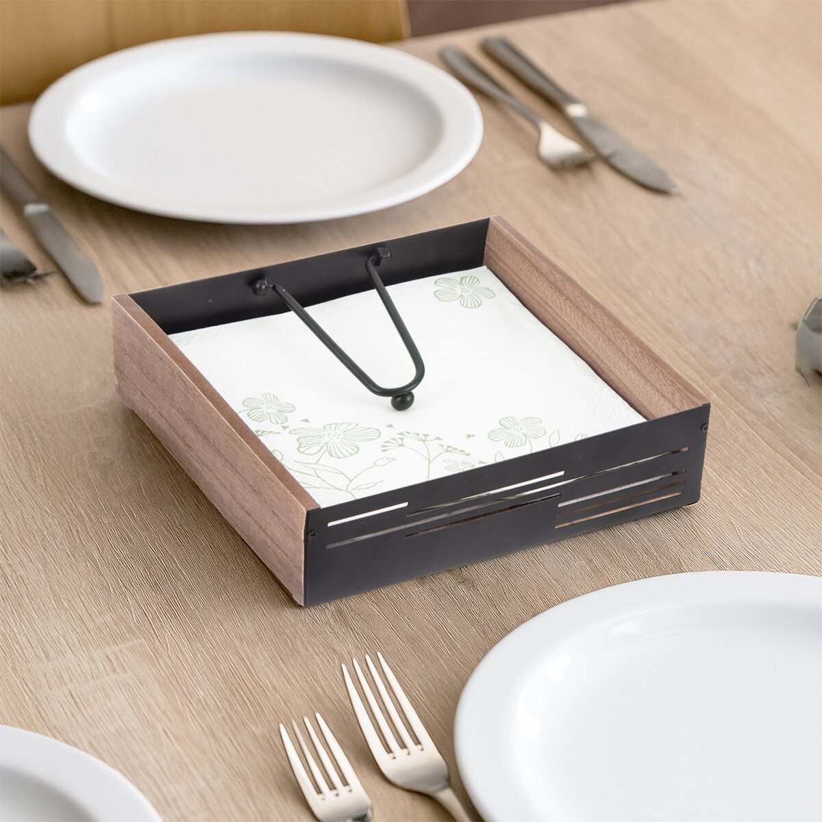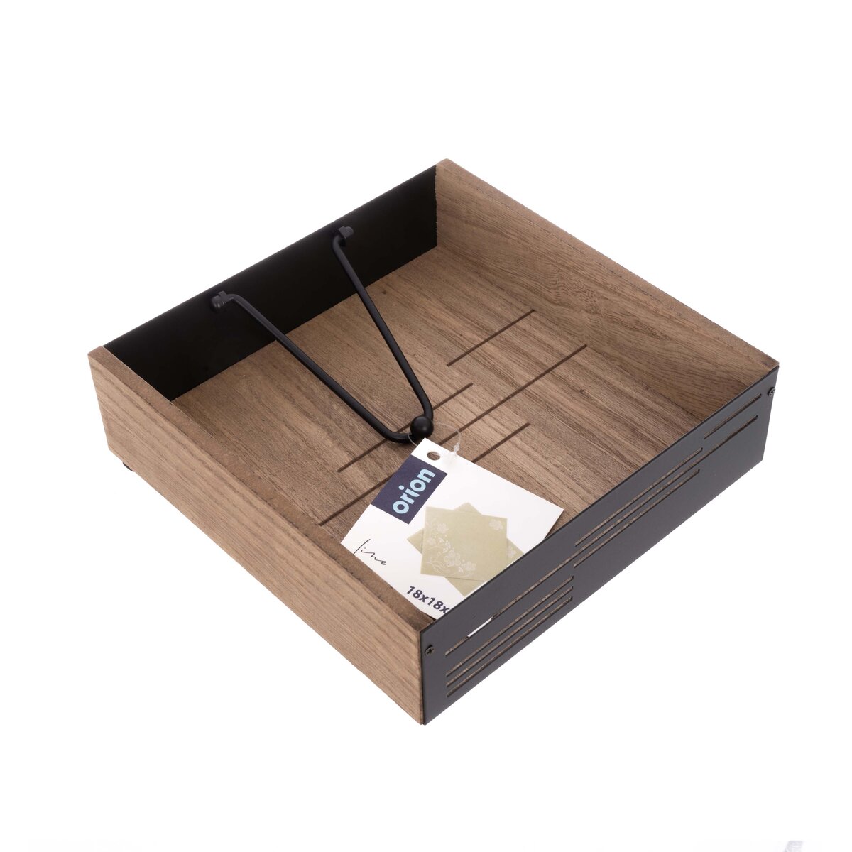 Kód produktu 154324Stojan LINE na ubrousky pro domácí i venkovní stolování je vyroben z dřevovláknité desky a kovových prvků s černým nástřikem. Díky pohyblivé kovové záklopce udrží ubrousky na místě i při větrném počasí.