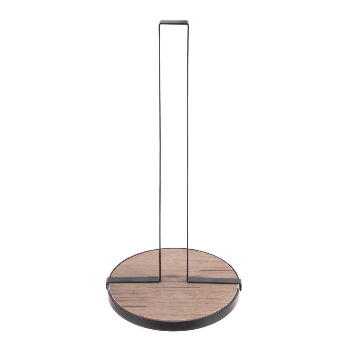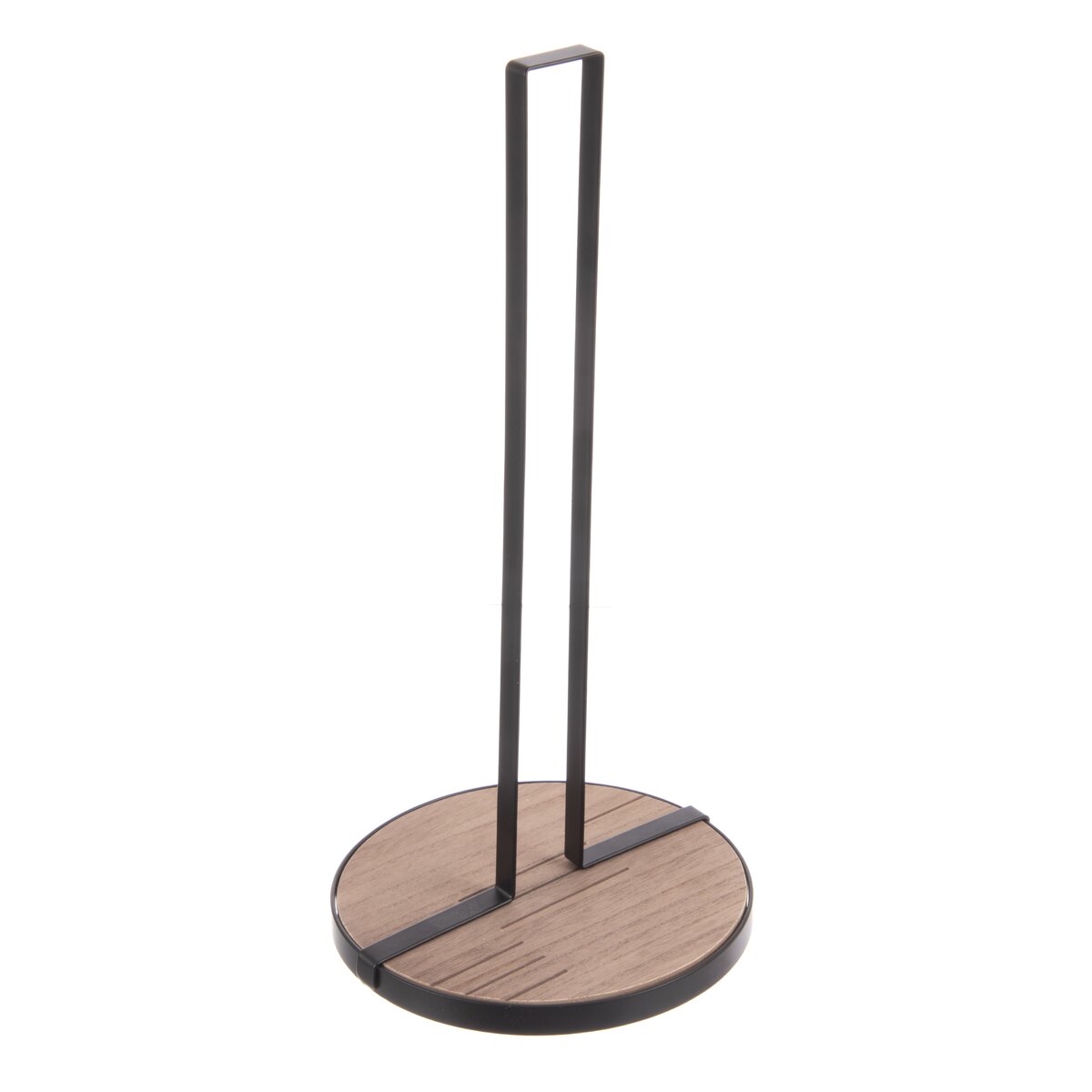 Stojan na papírové utěrky zajistí, že budou mít své stálé místo na kuchyňské lince nebo u stolu. Je kombinací dřevovláknité desky MDF a základny s tyčí z kovu s černým nástřikem.