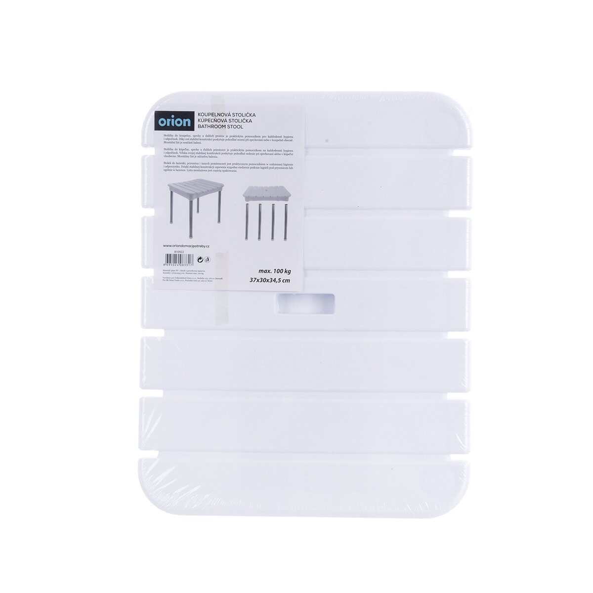 Má nosnost až 100 kg. Kompaktní rozměry 37×30×34,5 cm umožňují snadné umístění i v menších prostorách. Montážní list je součástí balení.