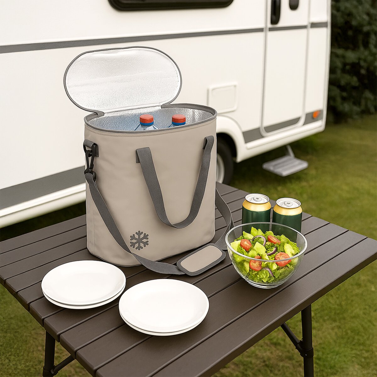 Kód produktu 731434Velká termobrašna o objemu cca 24 l umožní uložení teplých či chlazených potravin a nápojů v nádobách tak, aby si zachovaly svou teplotu po delší dobu. To je praktické na cestách, na pikniku, výletech i u vody.