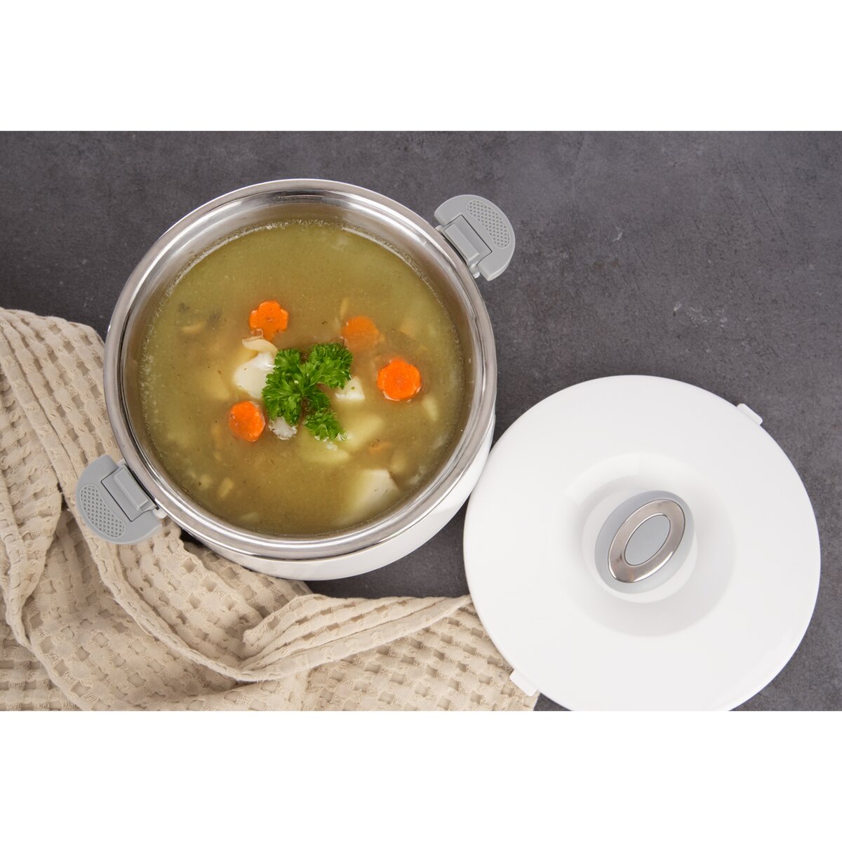 Více informacíTermomísa udrží vložený pokrm po dlouhou dobu teplý nebo naopak chladný. To je výborným řešením, jak si vzít velkou porci připraveného pokrmu pro sebe a své blízké na chalupu, kde nechcete hned po příjezdu vařit, naložené maso na zahradu ke grilu, případně zanesete hotový pokrm vašim blízkým.
